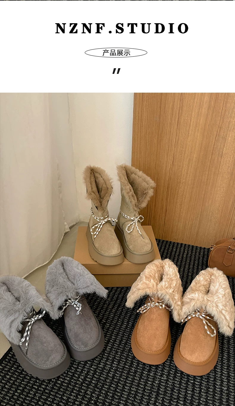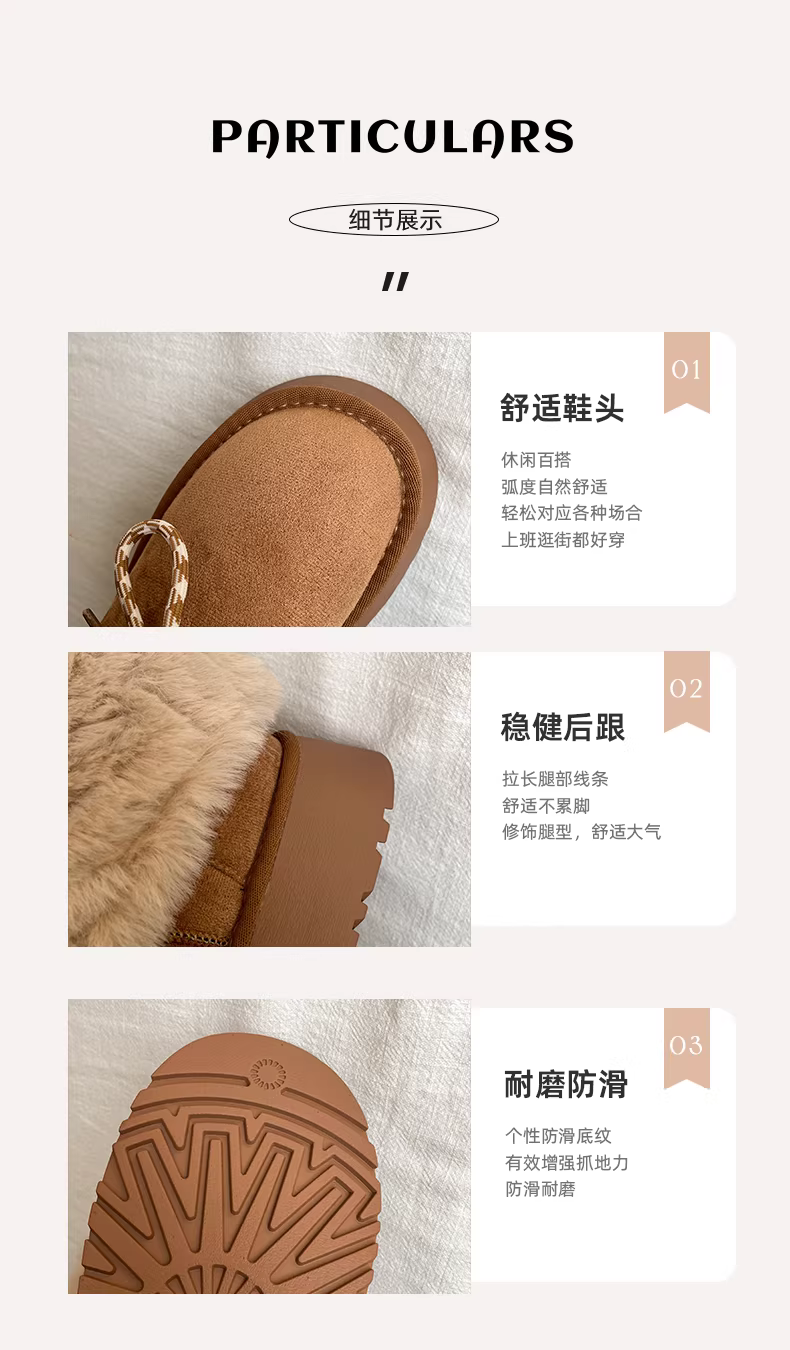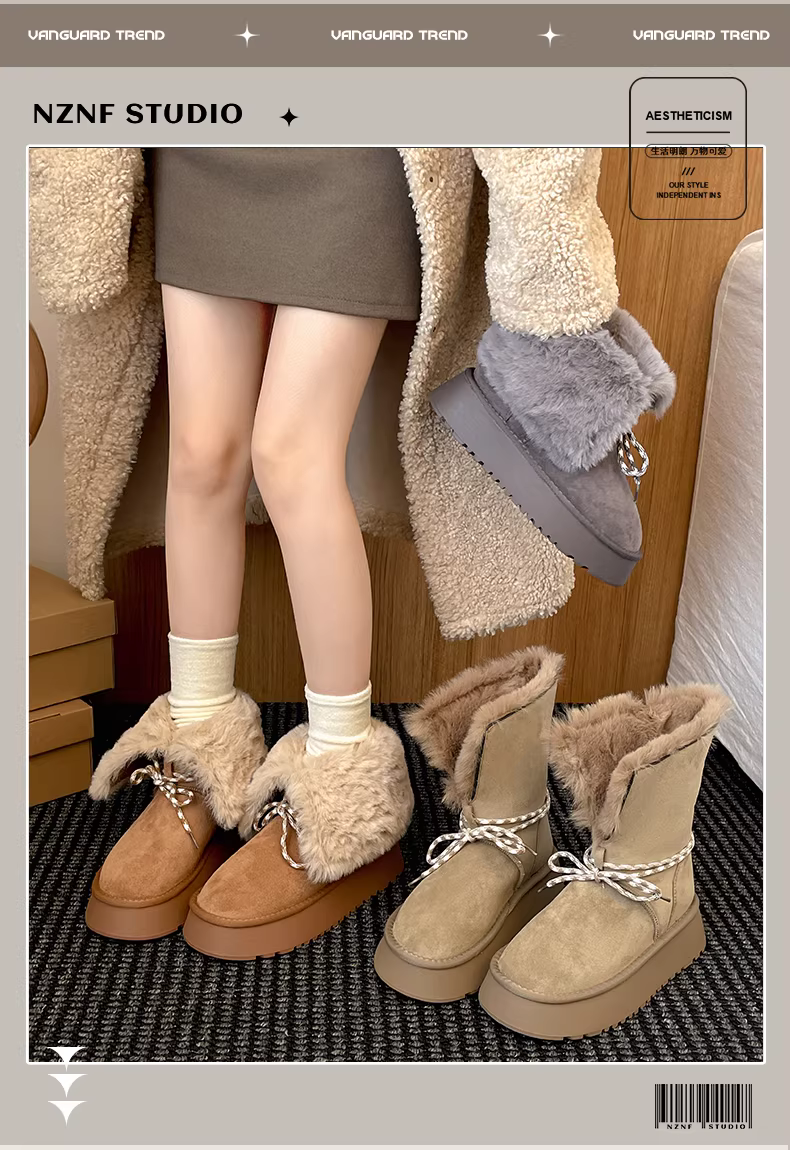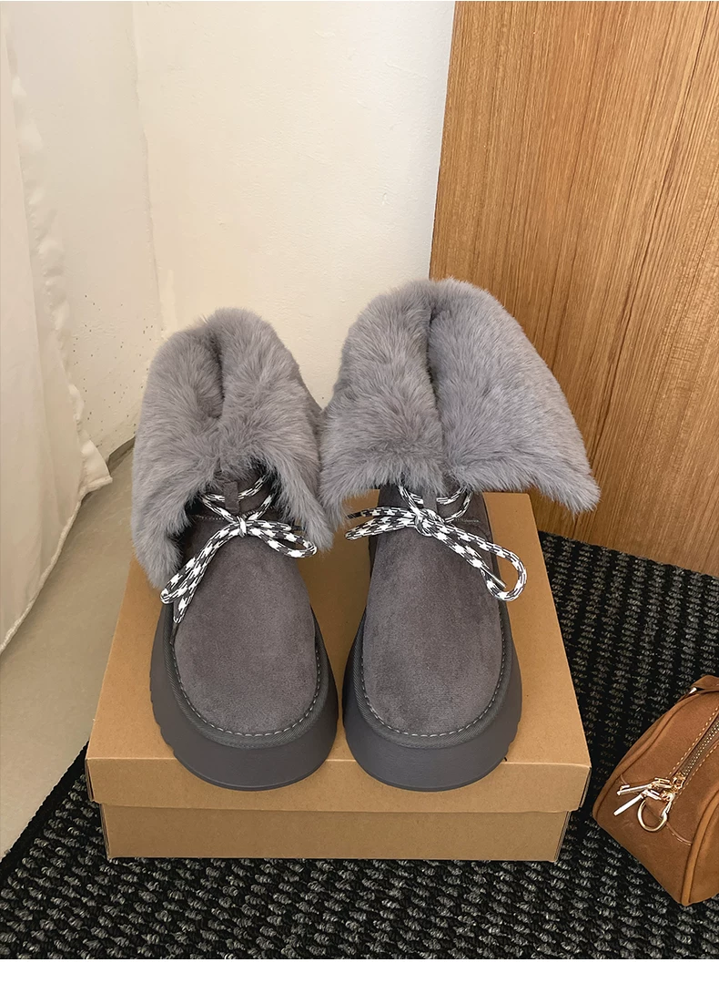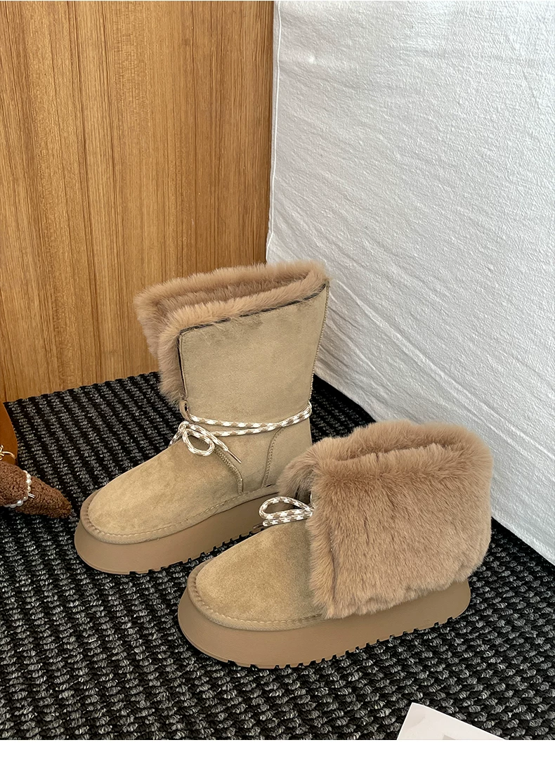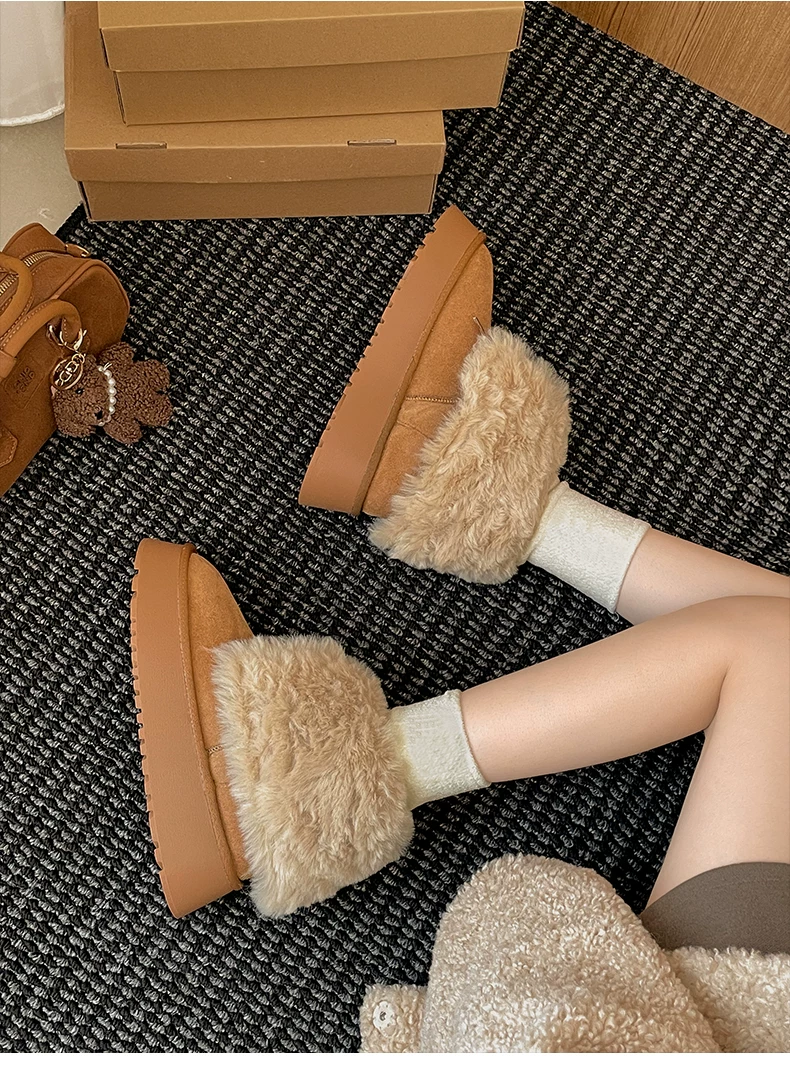 - Giày bốt tuyết đế dày lót lông cừu kiểu cổ điển màu nâu dành cho nữ, giày bốt ngắn lông ấm áp mùa đông mới năm 2025, giày cotton.