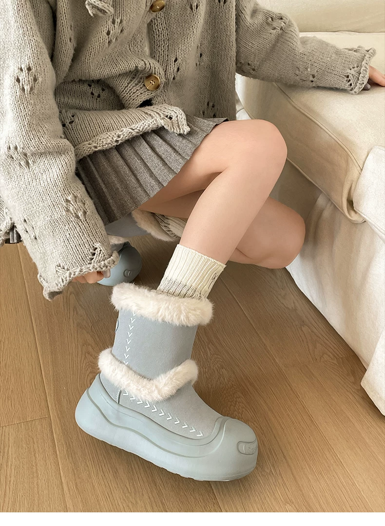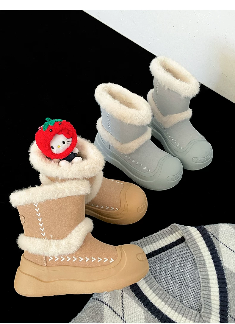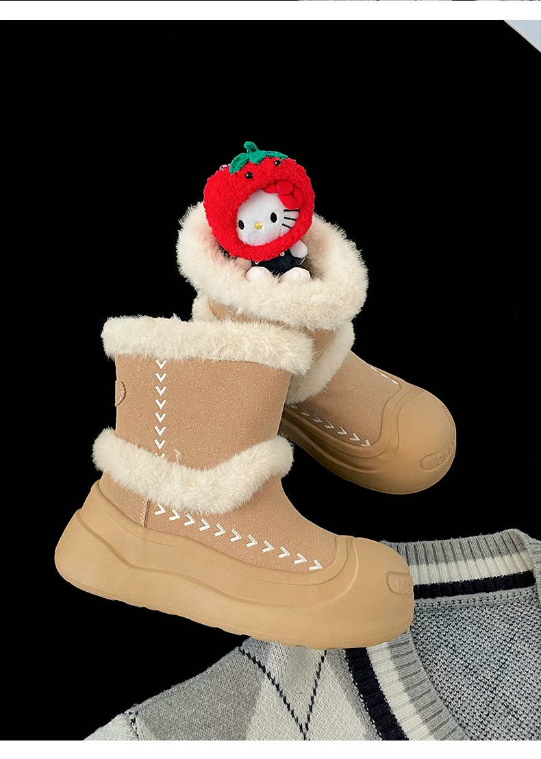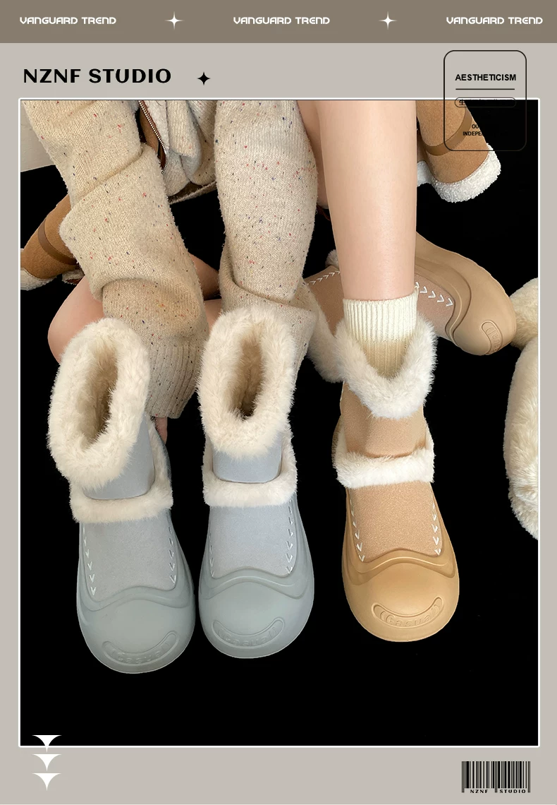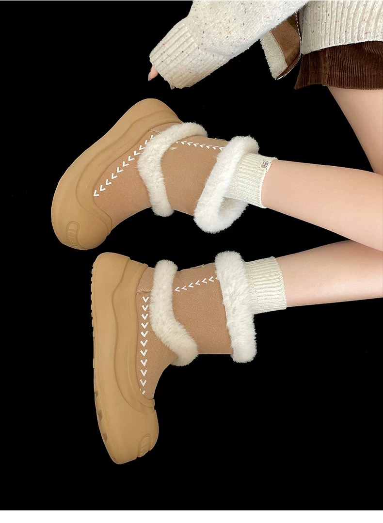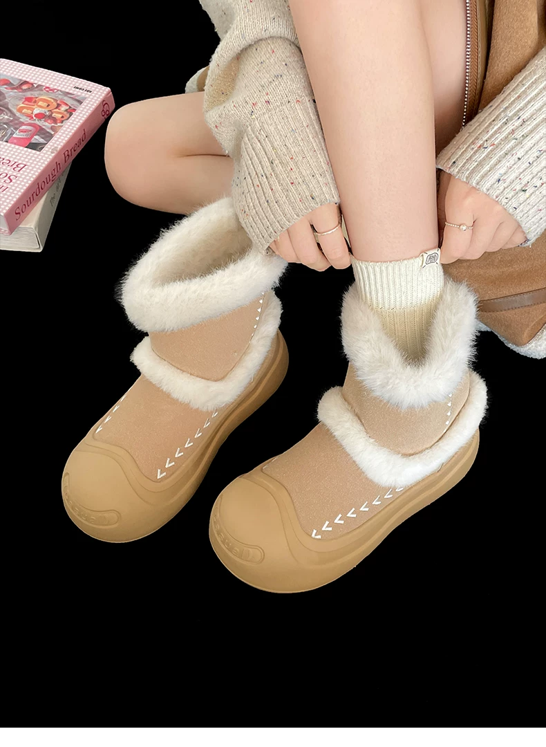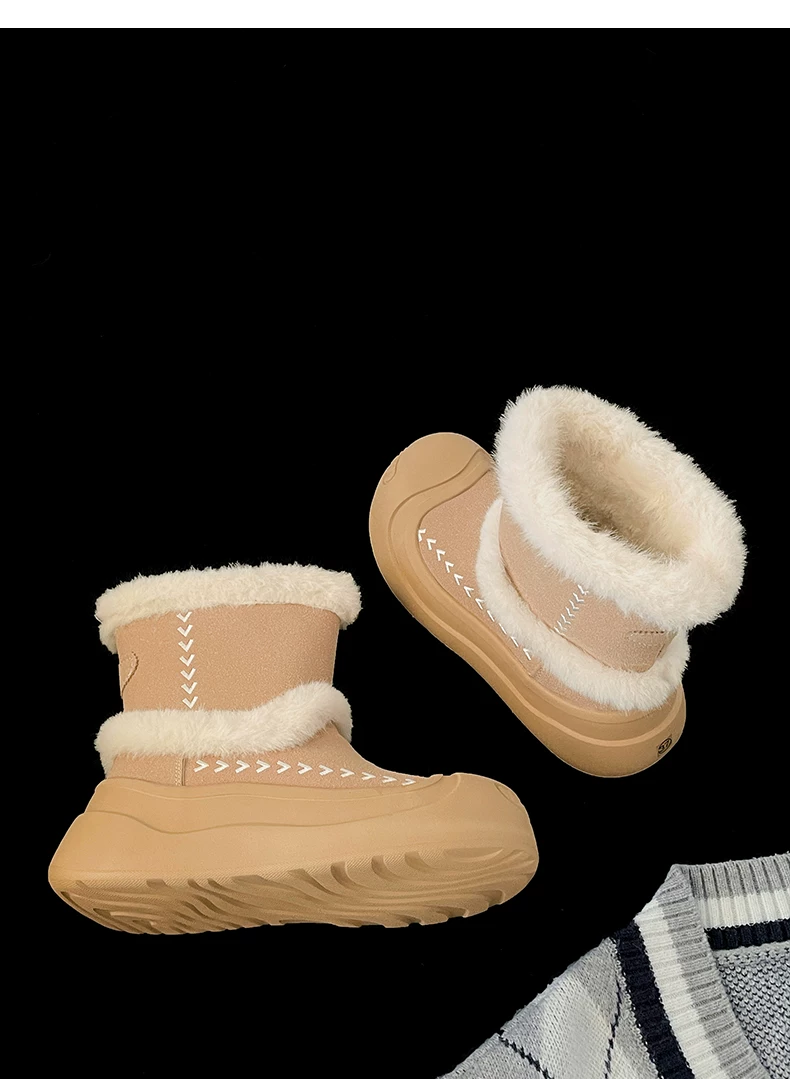 - Giày bốt tuyết đế dày lót lông cừu kiểu cổ điển Nam Trung Quốc dành cho nữ 2025 Mẫu mới mùa đông ấm áp chống trơn trượt Giày bông Đông Bắc
