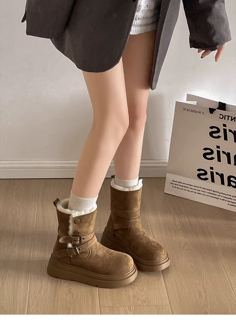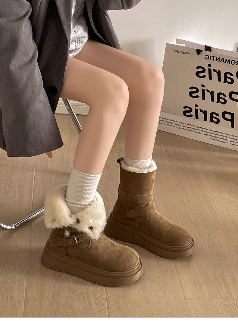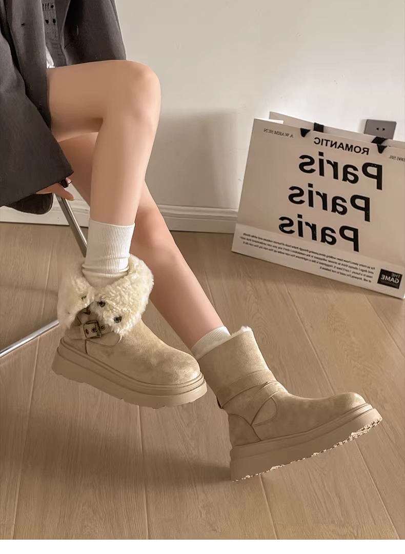 - Giày bốt tuyết đế dày lót lông cừu kiểu cổ điển Nam Trung Quốc dành cho nữ 2025 Mẫu mới mùa đông ấm áp đi ngoài trời kiểu Birkenstock bằng vải cotton