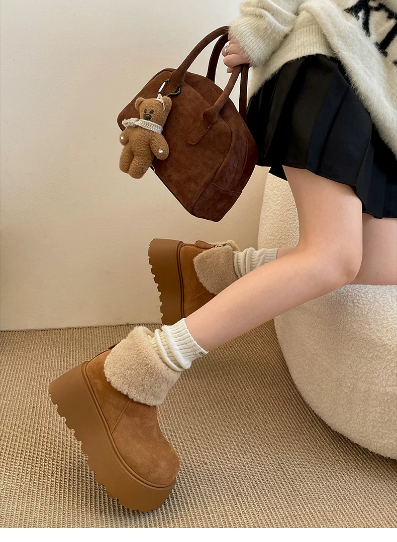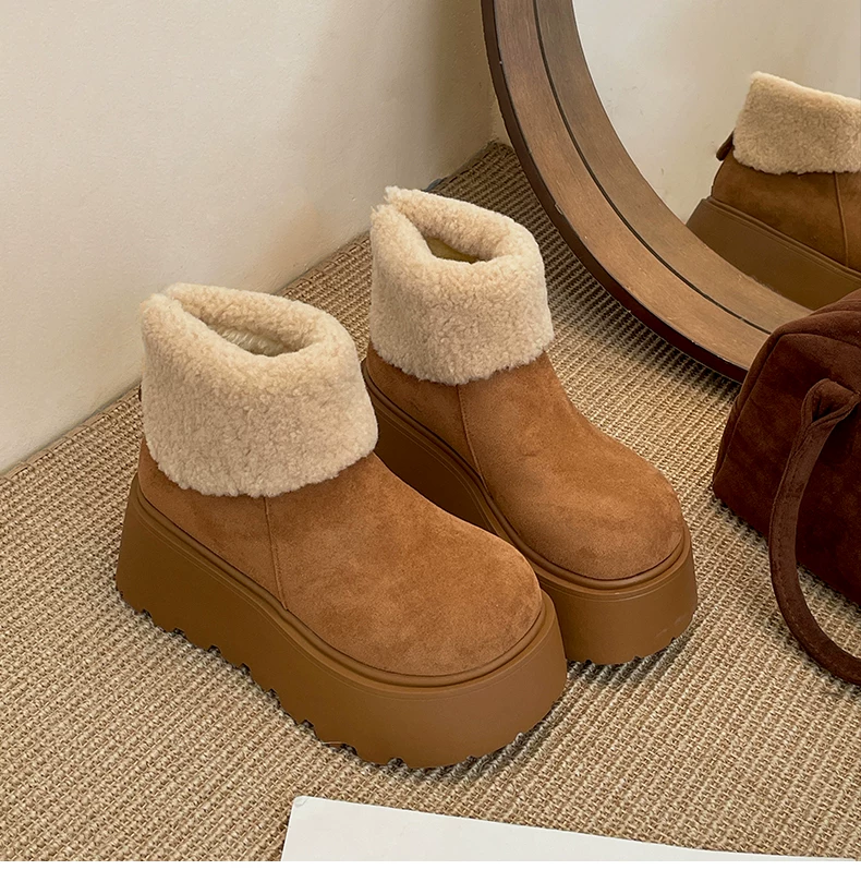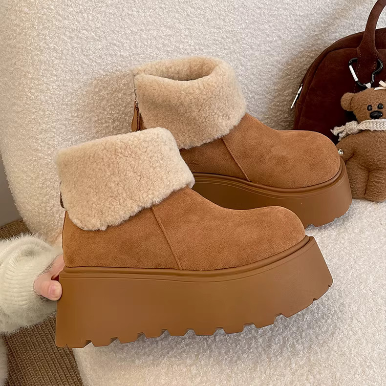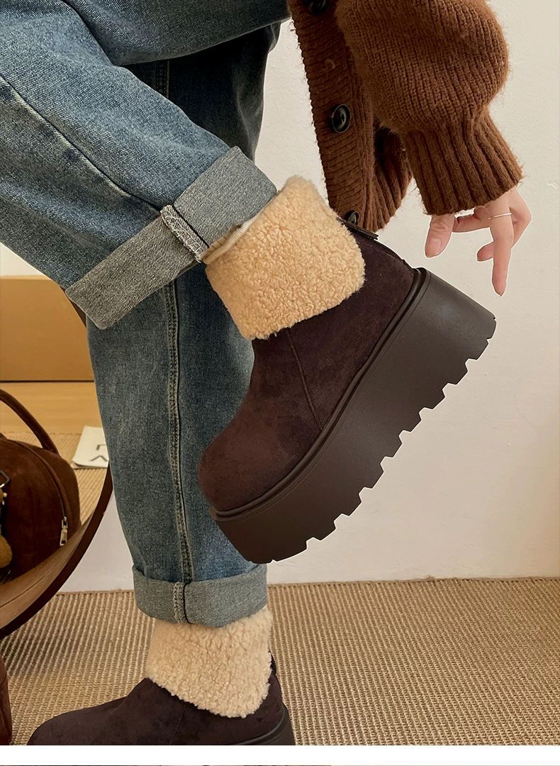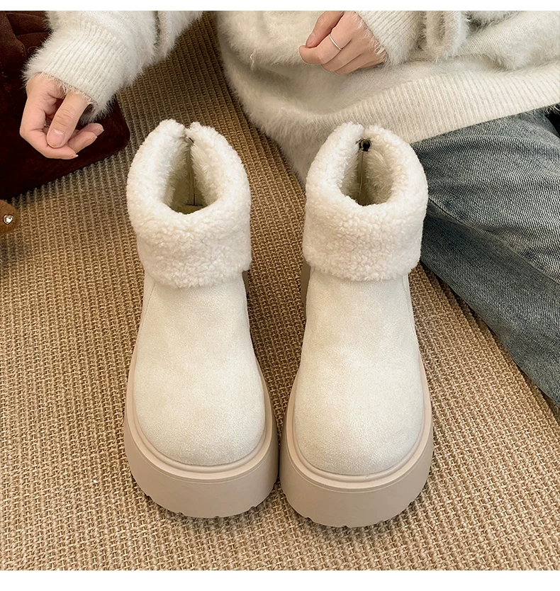 - Giày bốt tuyết đế dày lót lông cừu tăng chiều cao màu trắng Đông Bắc dành cho nữ, giày cotton giữ ấm mùa đông mới năm 2025 chống trơn trượt