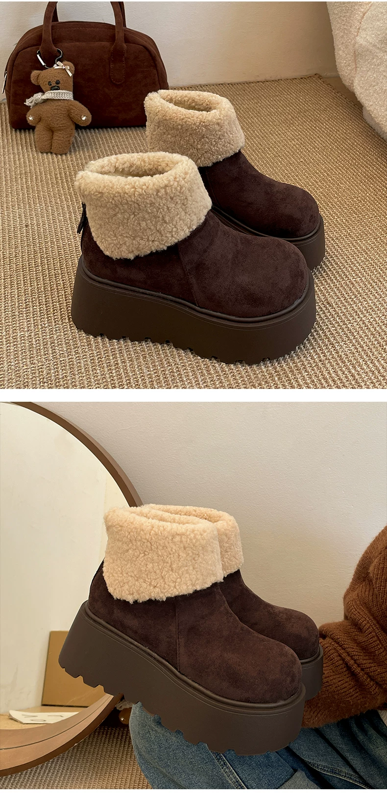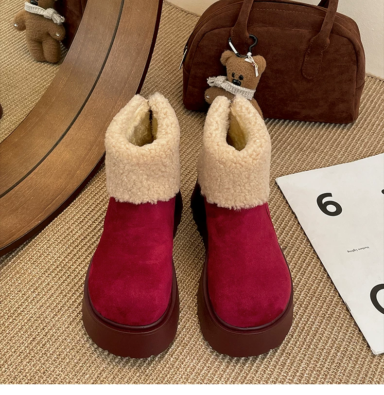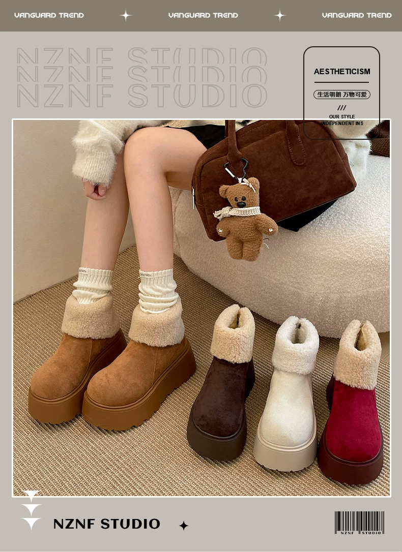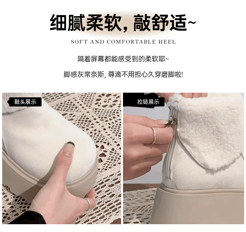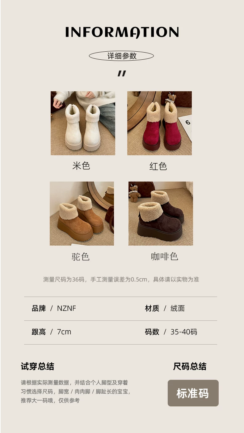 - Giày bốt tuyết đế dày lót lông cừu tăng chiều cao màu trắng Đông Bắc dành cho nữ, giày cotton giữ ấm mùa đông mới năm 2025 chống trơn trượt