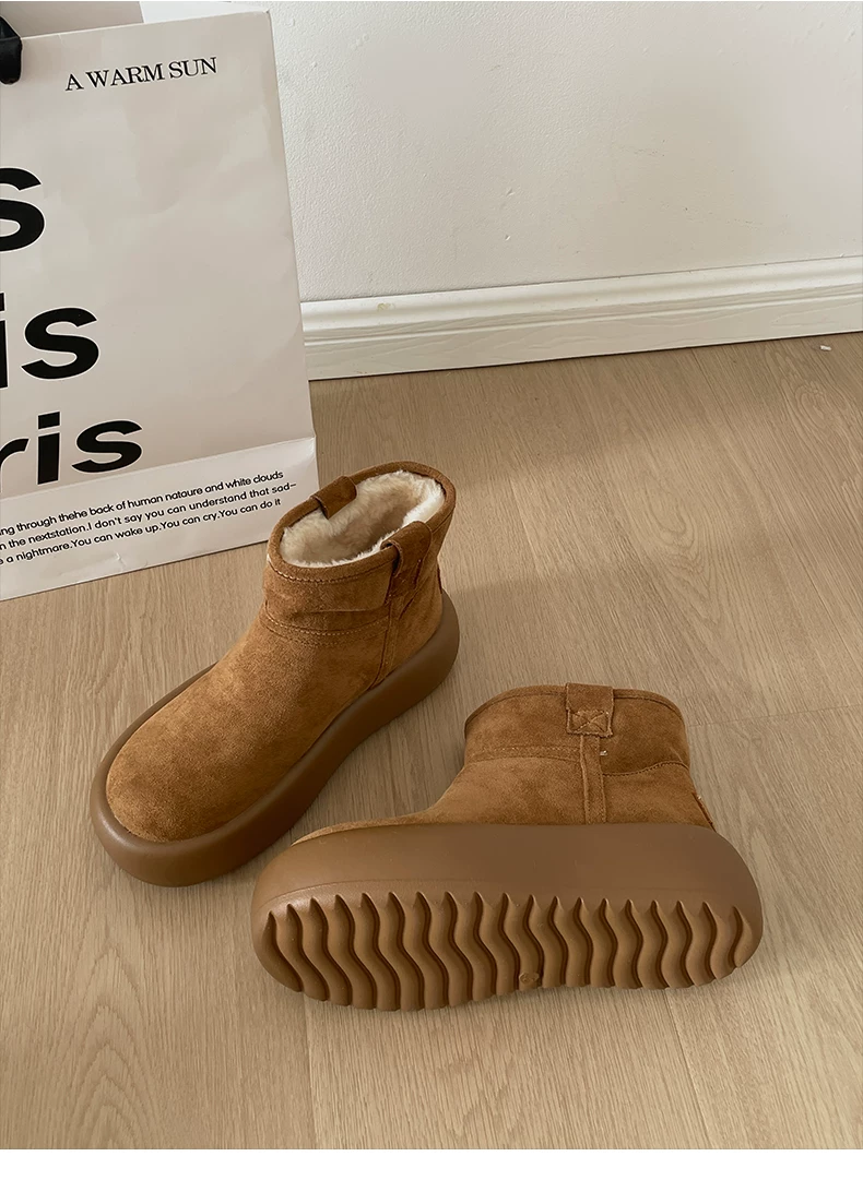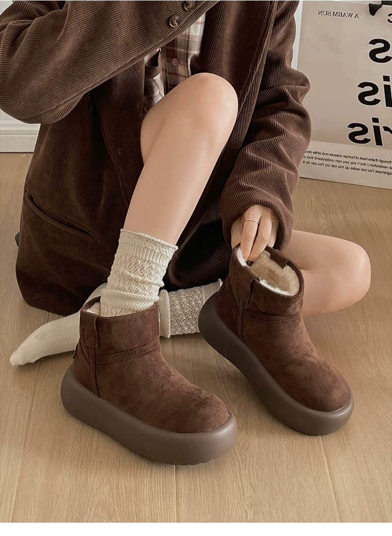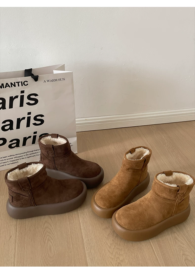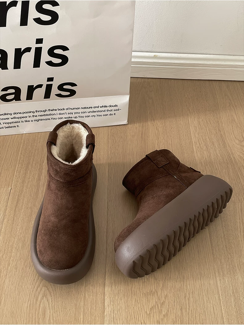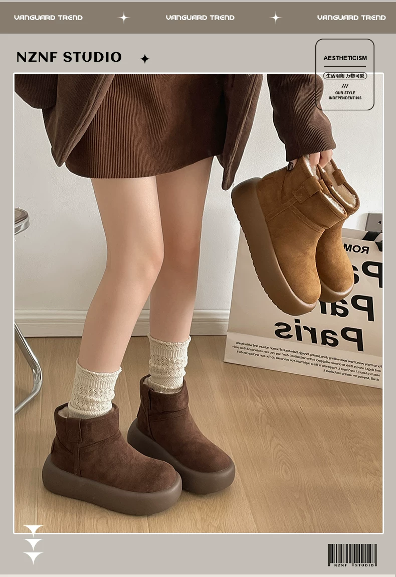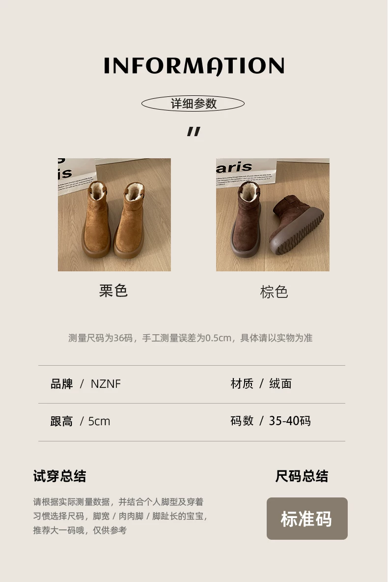 - Giày bốt tuyết đế dày màu nâu cổ điển Nanzai dành cho nữ 2025, giữ ấm mùa đông mới, lót lông cừu, kiểu Birkenstock, chất liệu cotton