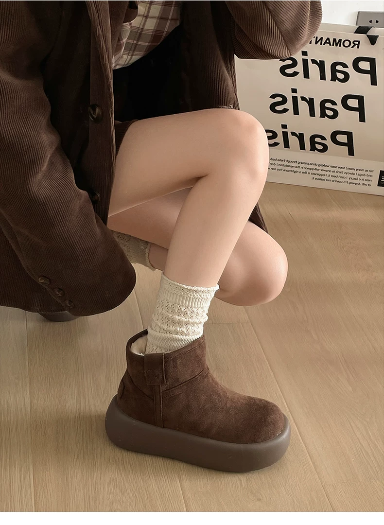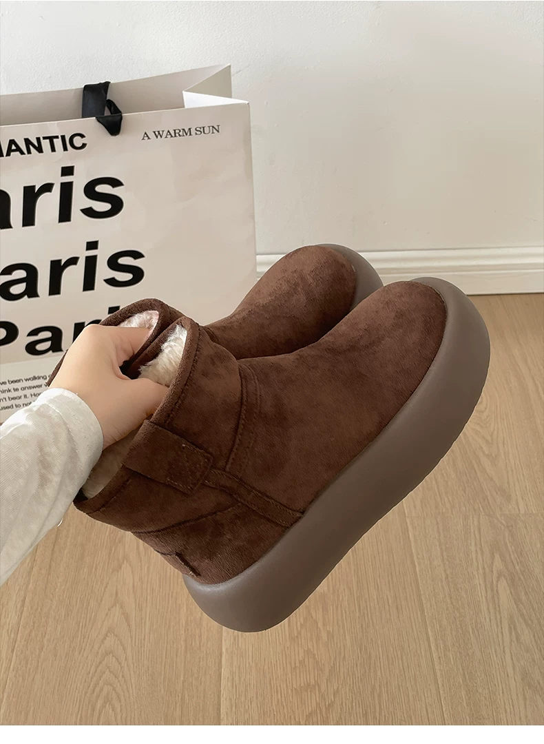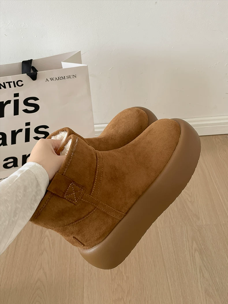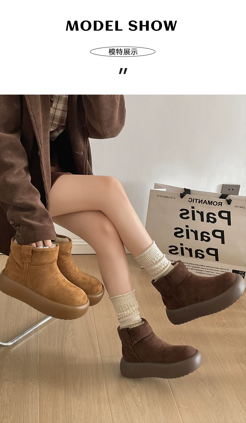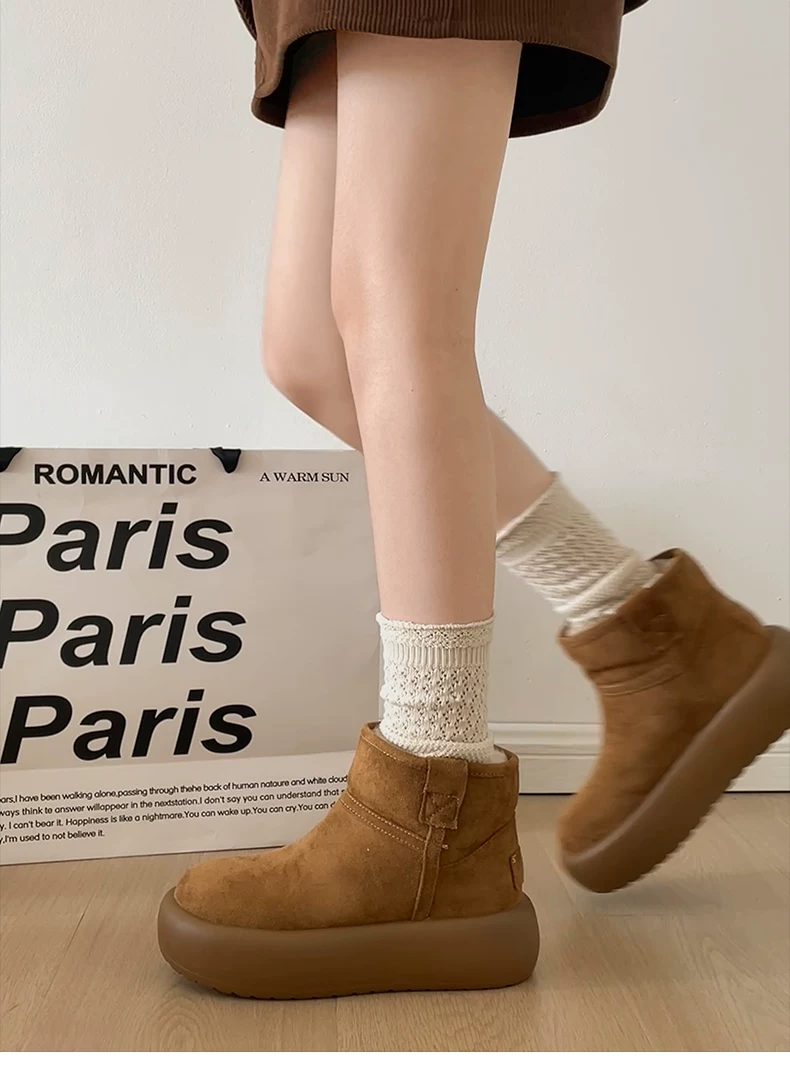 - Giày bốt tuyết đế dày màu nâu cổ điển Nanzai dành cho nữ 2025, giữ ấm mùa đông mới, lót lông cừu, kiểu Birkenstock, chất liệu cotton