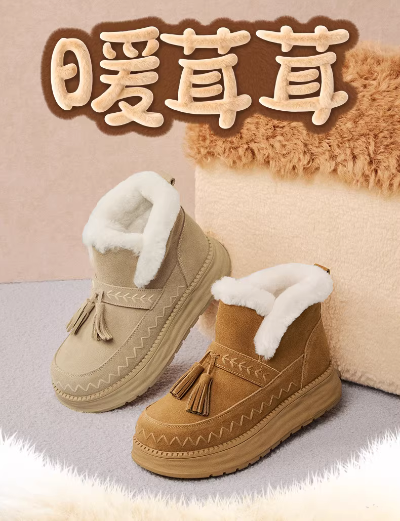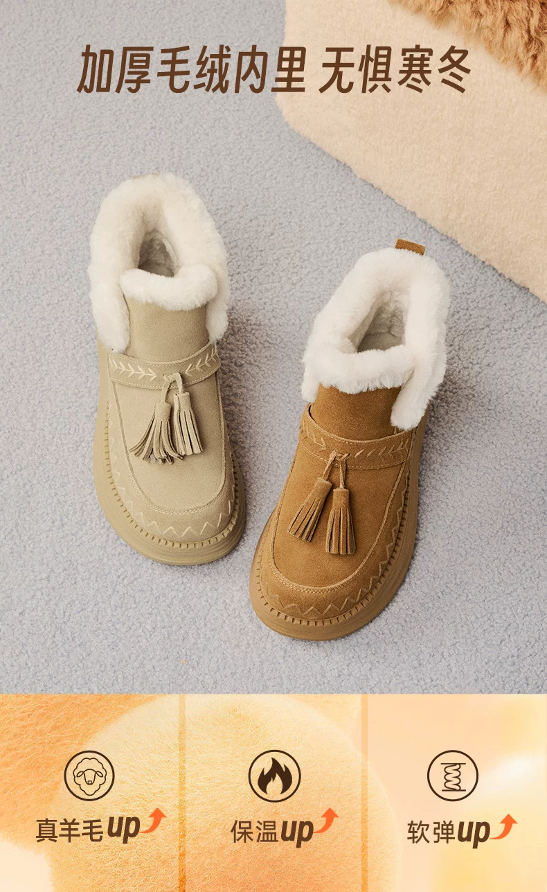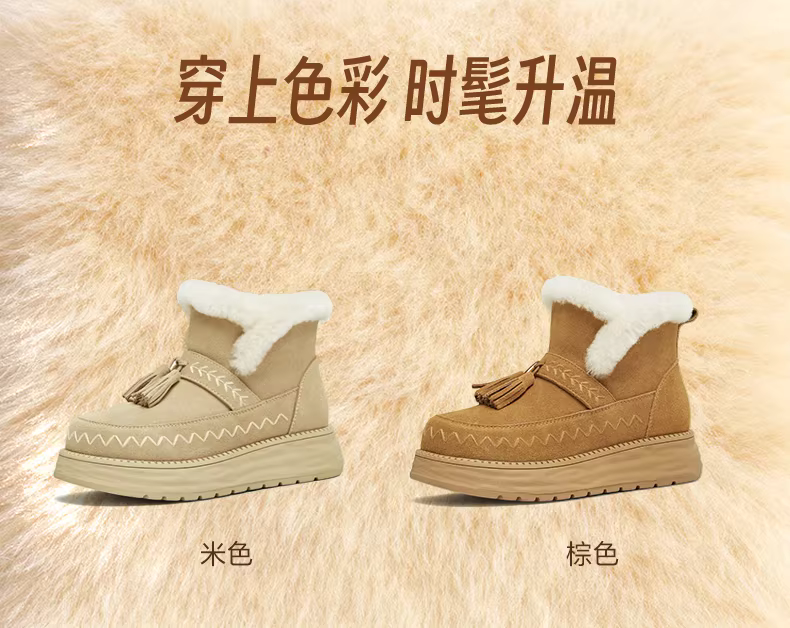 - Giày bốt tuyết giữ ấm lót lông cừu đế dày tăng chiều cao kiểu cổ điển Tianmeiyi dành cho nữ, kiểu ngắn, mẫu mới mùa đông 2025 KXD39DD5