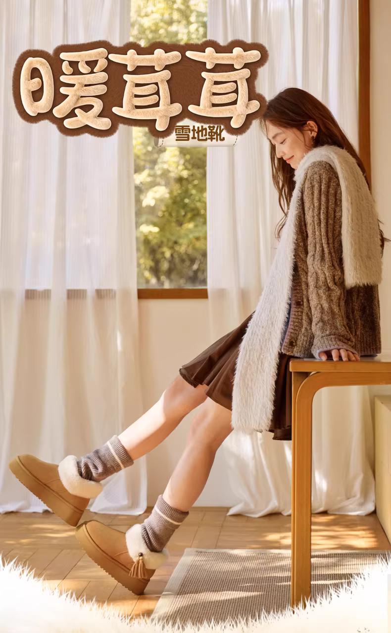 - Giày bốt tuyết giữ ấm lót lông cừu đế dày tăng chiều cao Tianmeiyi dành cho nữ, kiểu cổ ngắn retro, mẫu mới mùa đông 2025 CBF42DD5