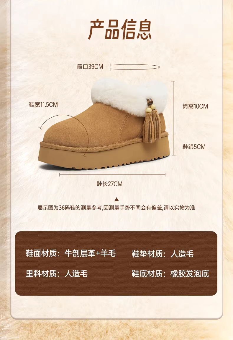 Giày bốt tuyết giữ ấm lót lông cừu đế dày tăng chiều cao Tianmeiyi dành cho nữ, kiểu cổ ngắn retro, mẫu mới mùa đông 2025 CBF42DD5
