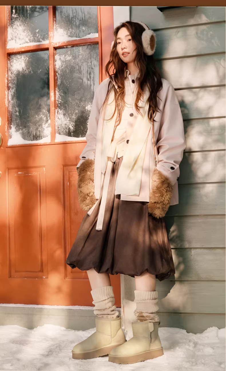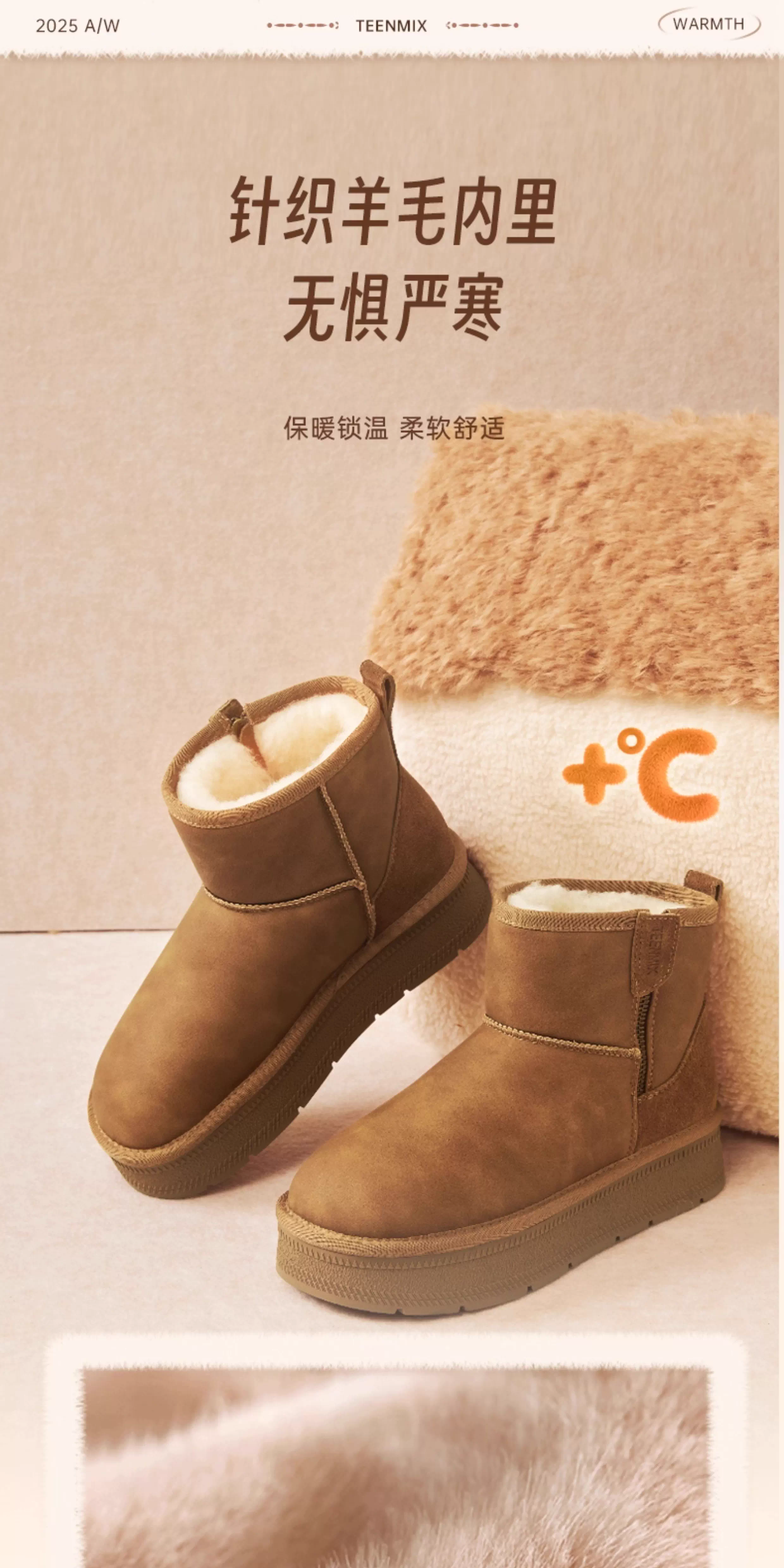- Giày bốt tuyết giữ ấm lót lông cừu đế dày tăng chiều cao Tianmeiyi, giày bốt ngắn nữ thời trang mùa đông 2025 mẫu mới BM272DD5
