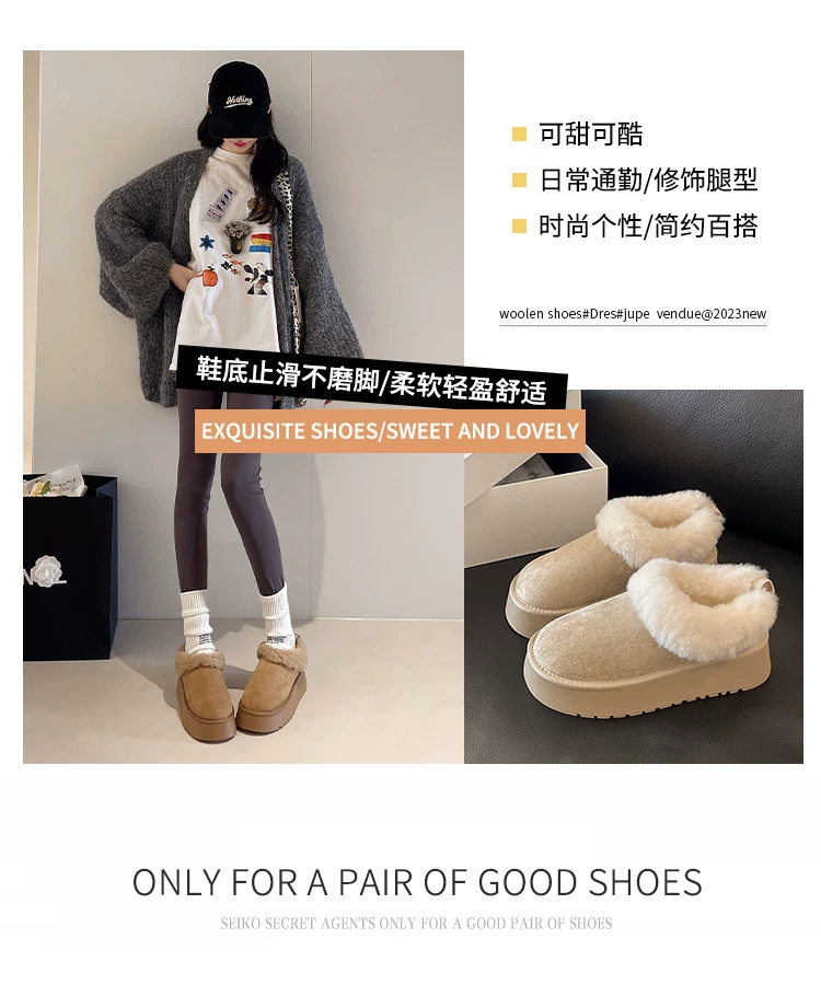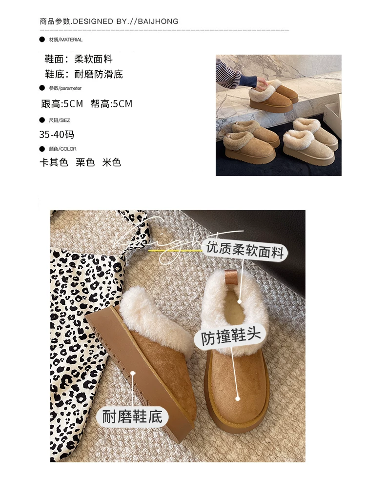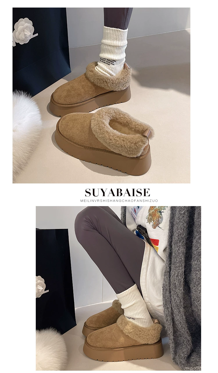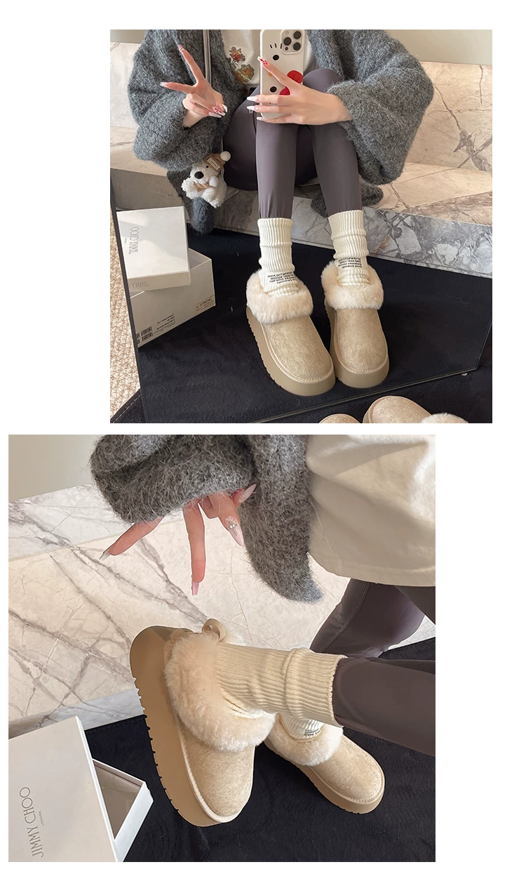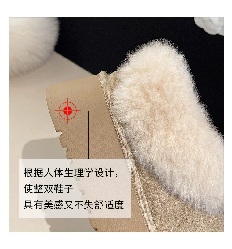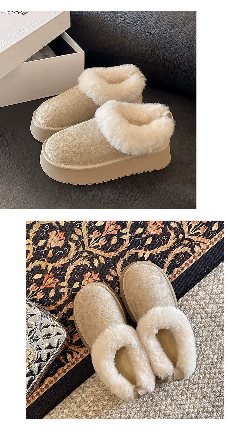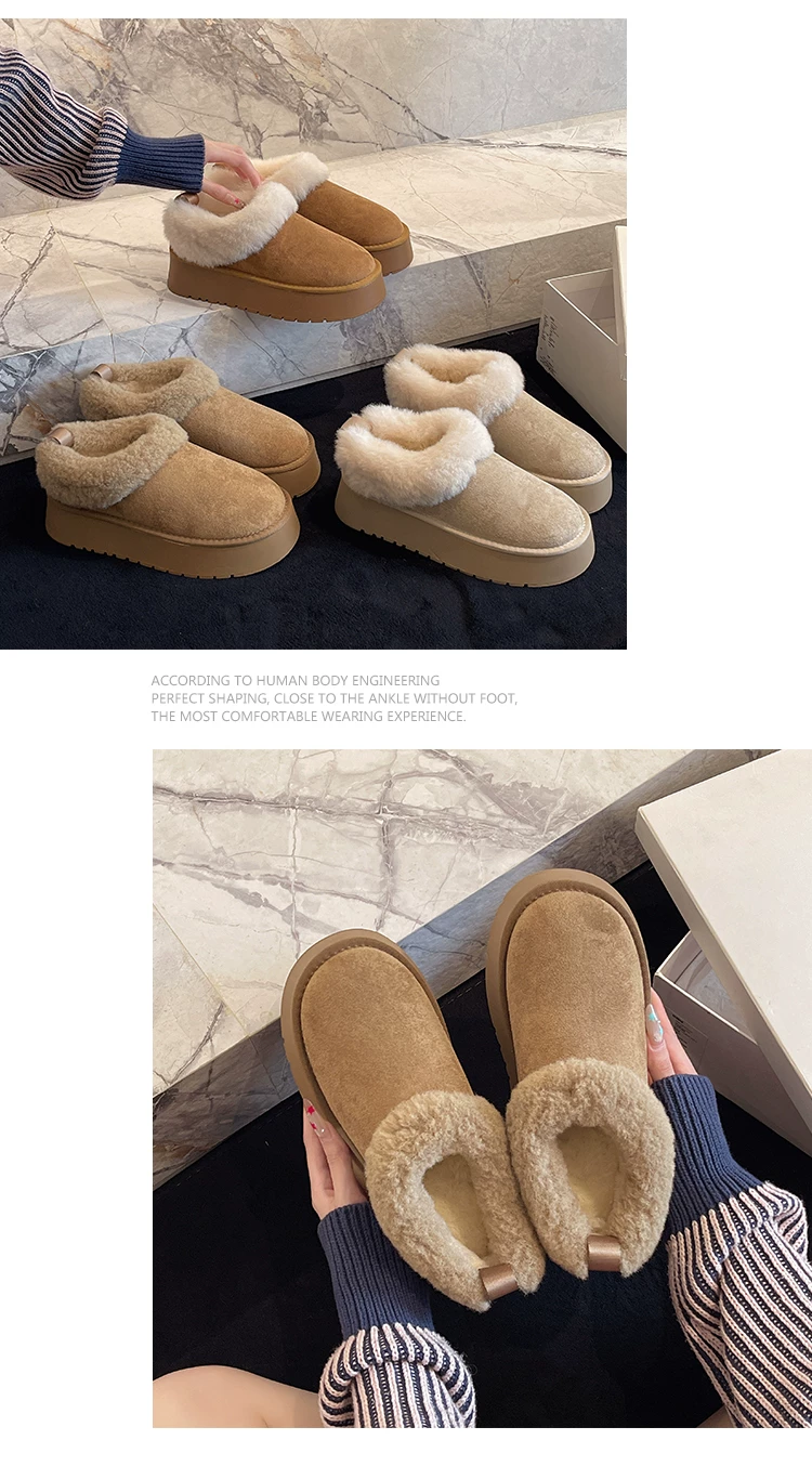 - Giày bốt tuyết lót lông cừu đế dày kiểu retro dành cho nữ, mẫu mới mùa đông 2025, giữ ấm, phong cách Birkenstock, chất liệu cotton, lông mềm mại, thích hợp cho vùng Đông Bắc
