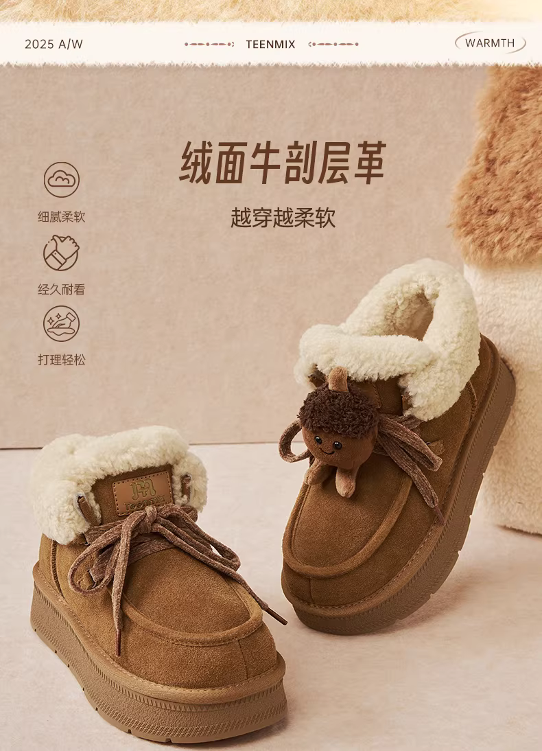 - Giày bốt tuyết lót lông giữ ấm đế dày tăng chiều cao Tianmeiyi, chất liệu bông mềm mại, kiểu dáng mới mùa đông 2025 dành cho nữ