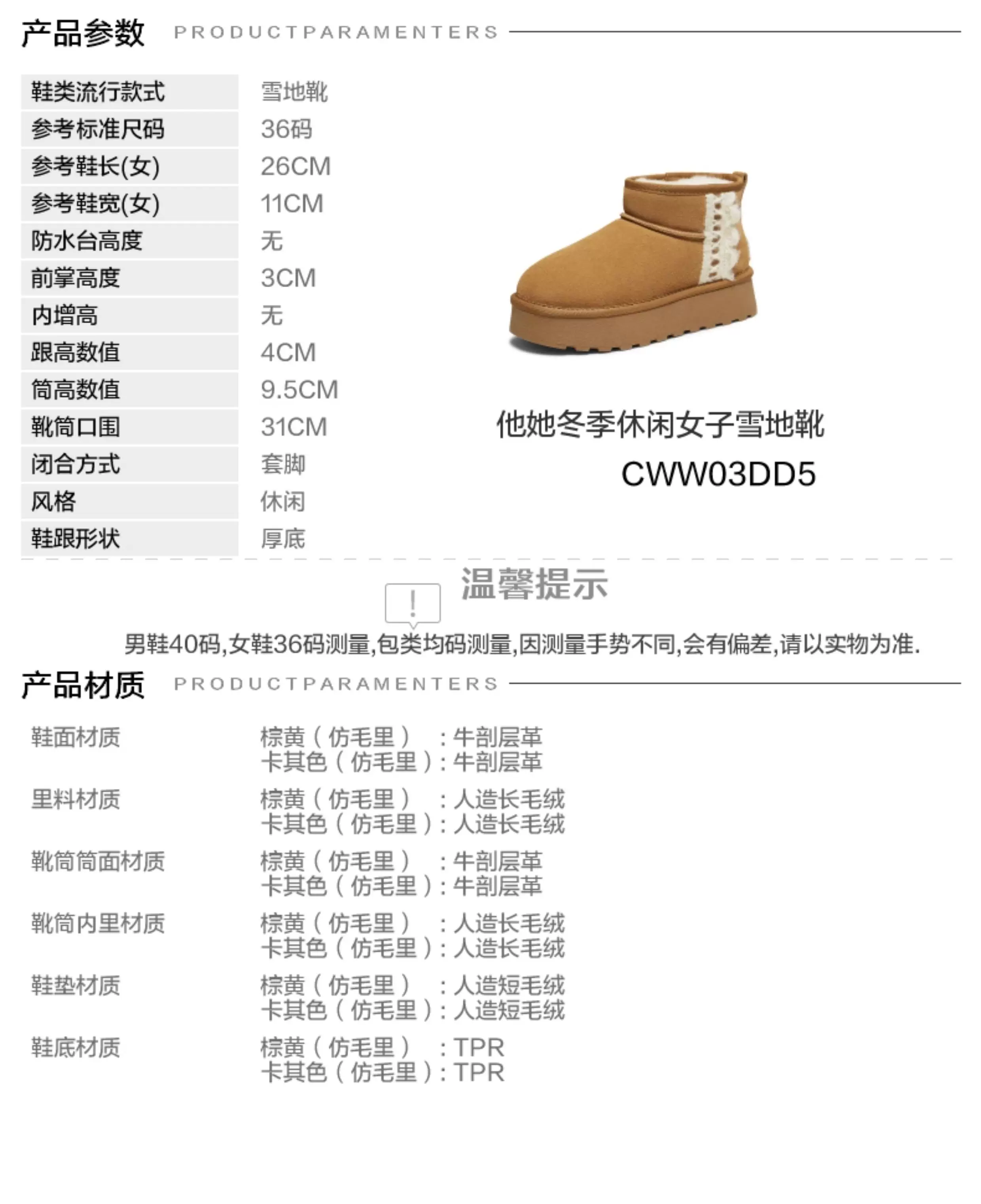 - Giày bốt tuyết TATA mùa đông 2025 mới, đế dày, lót bông, có lông và giày dày dặn CWW03DD5