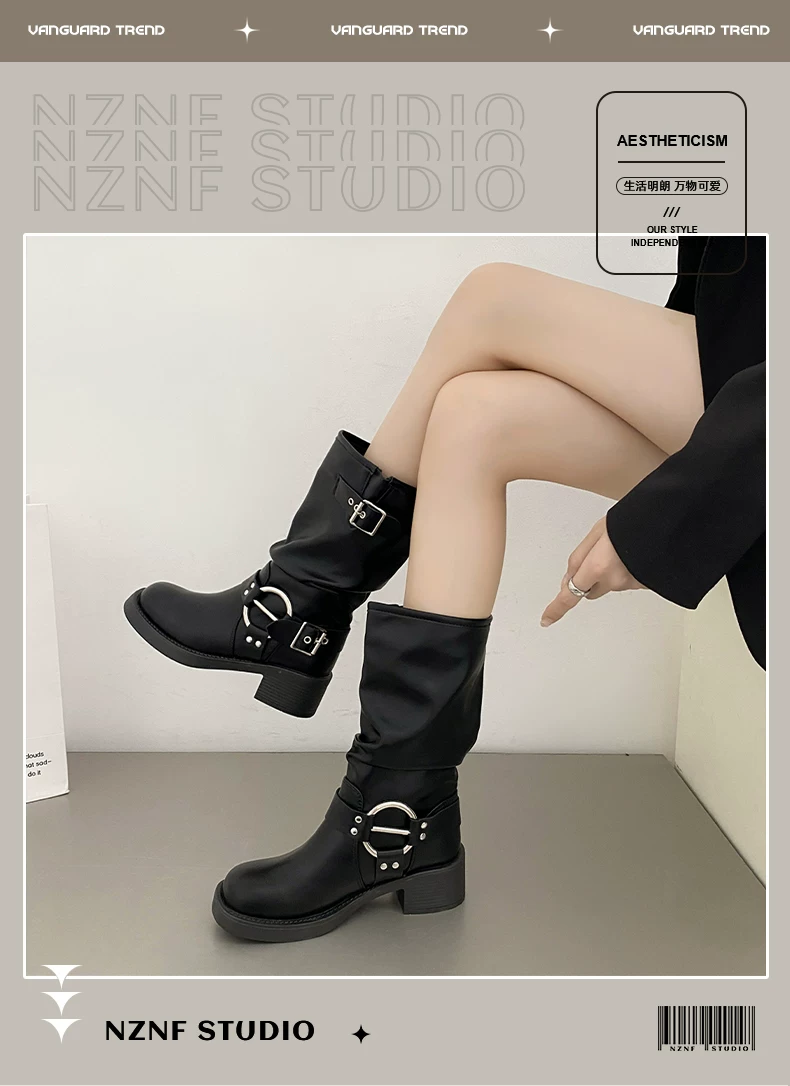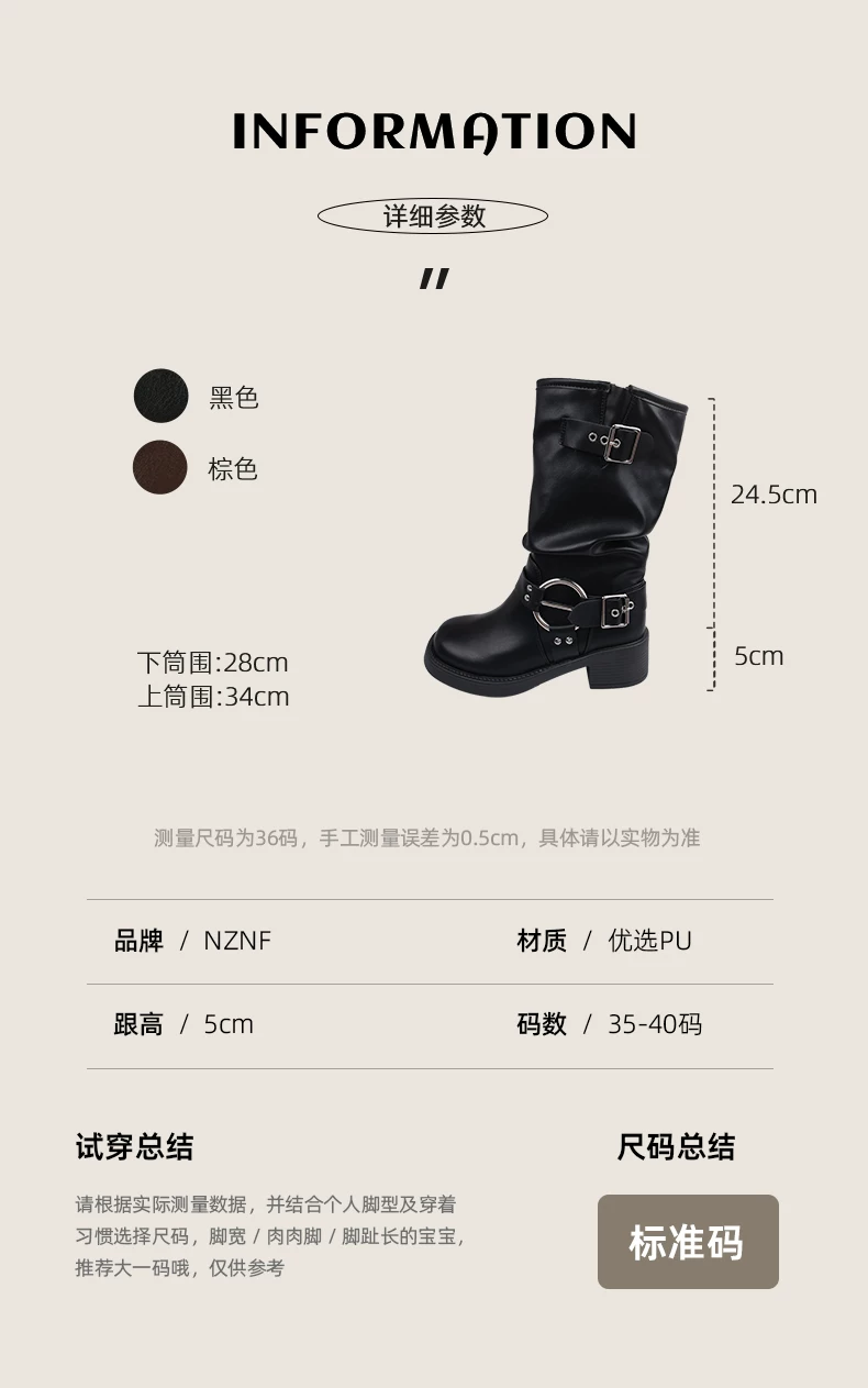 Giày cao bồi nữ kiểu Pháp phổ biến, đế dày màu nâu, mùa thu đông 2025, gót dày, kiểu cổ điển, tôn dáng, kiểu Martin