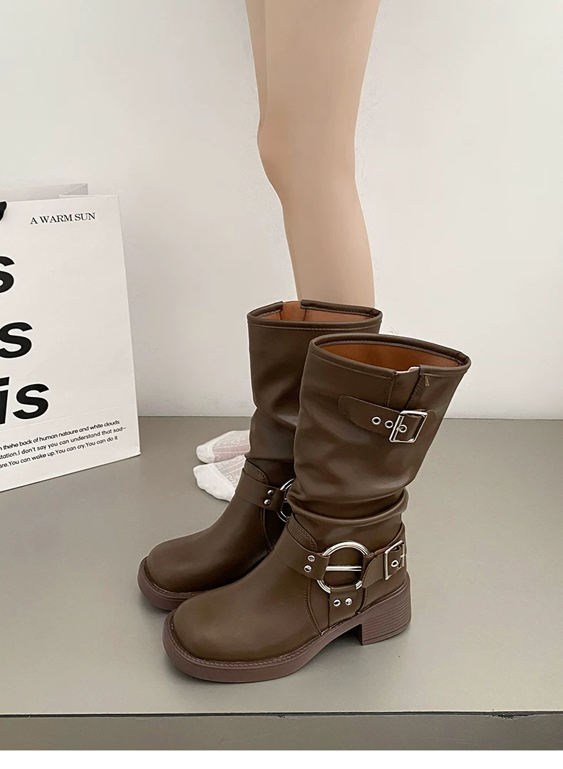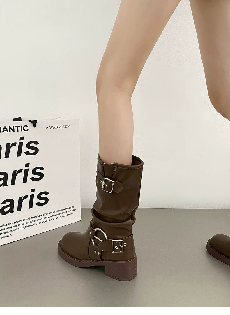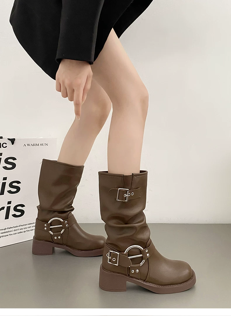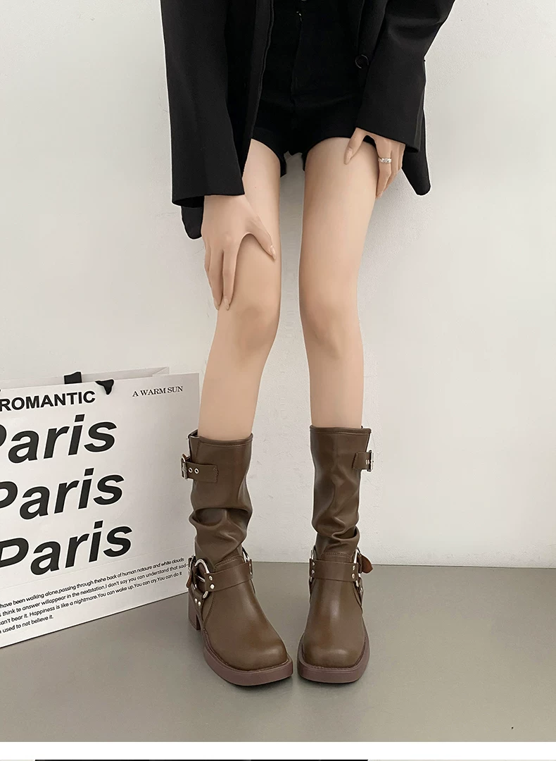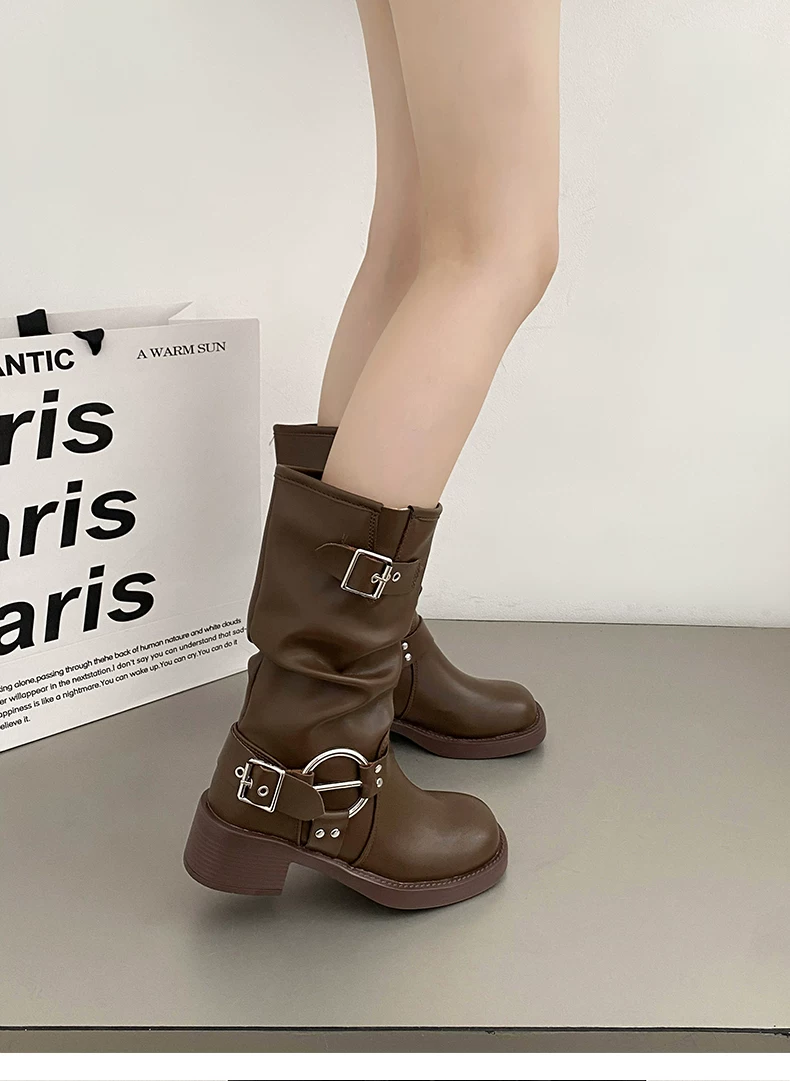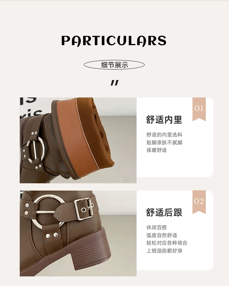 - Giày cao bồi nữ kiểu Pháp phổ biến, đế dày màu nâu, mùa thu đông 2025, gót dày, kiểu cổ điển, tôn dáng, kiểu Martin