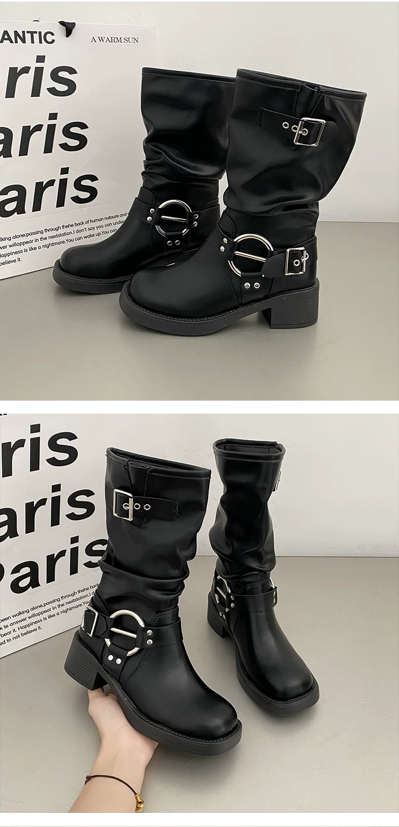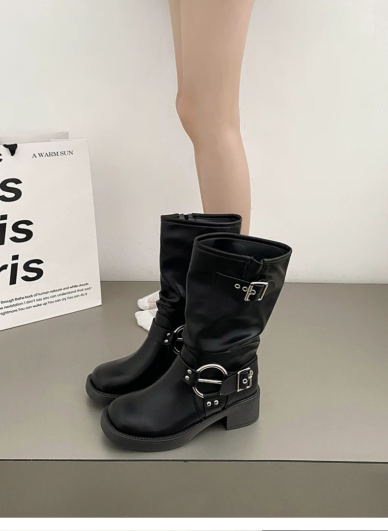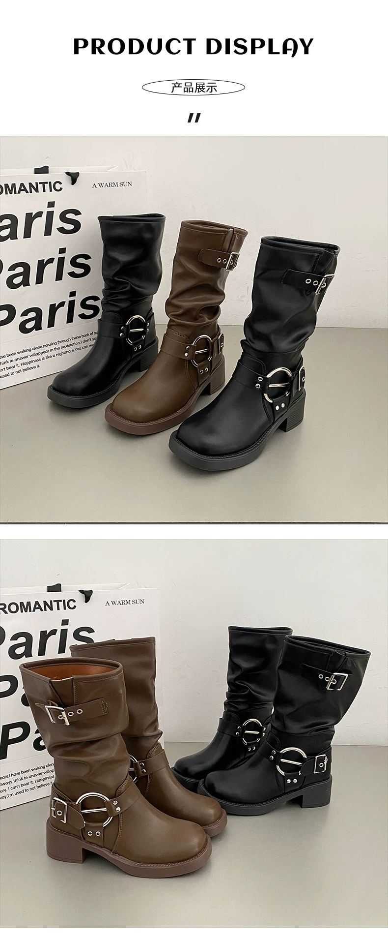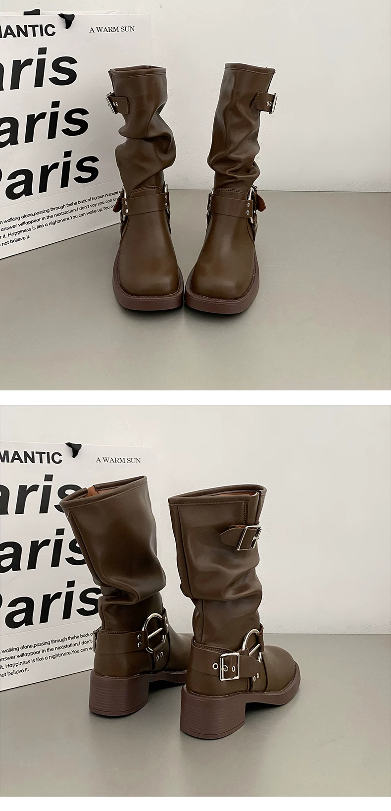 - Giày cao bồi nữ kiểu Pháp phổ biến, đế dày màu nâu, mùa thu đông 2025, gót dày, kiểu cổ điển, tôn dáng, kiểu Martin