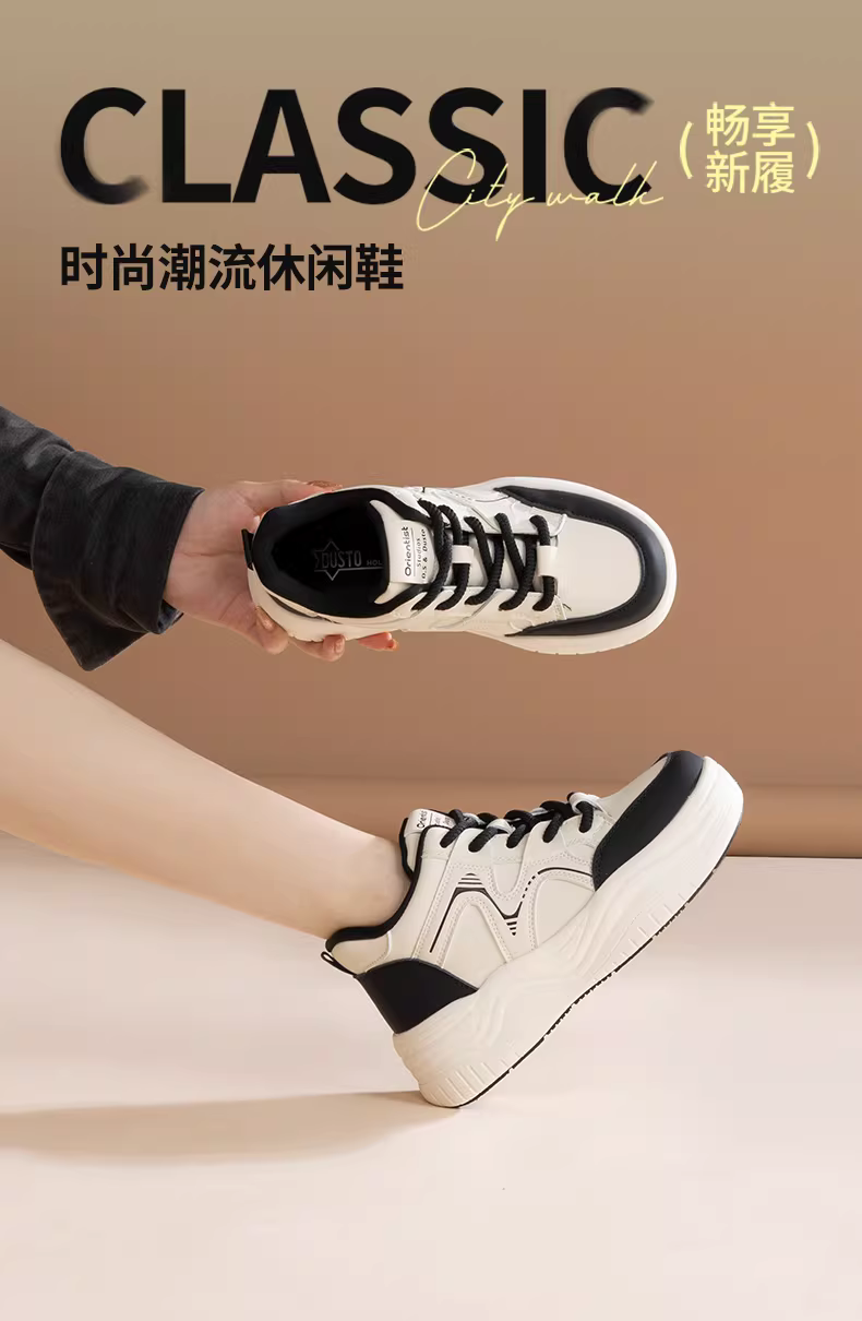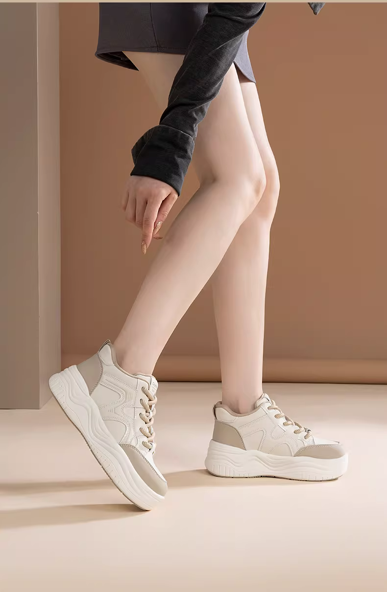 - Giày cao cổ Dadong dành cho nữ, giày thể thao đế dày màu trắng mùa thu đông 2025 mới, giày thể thao đa năng tăng chiều cao màu trắng.