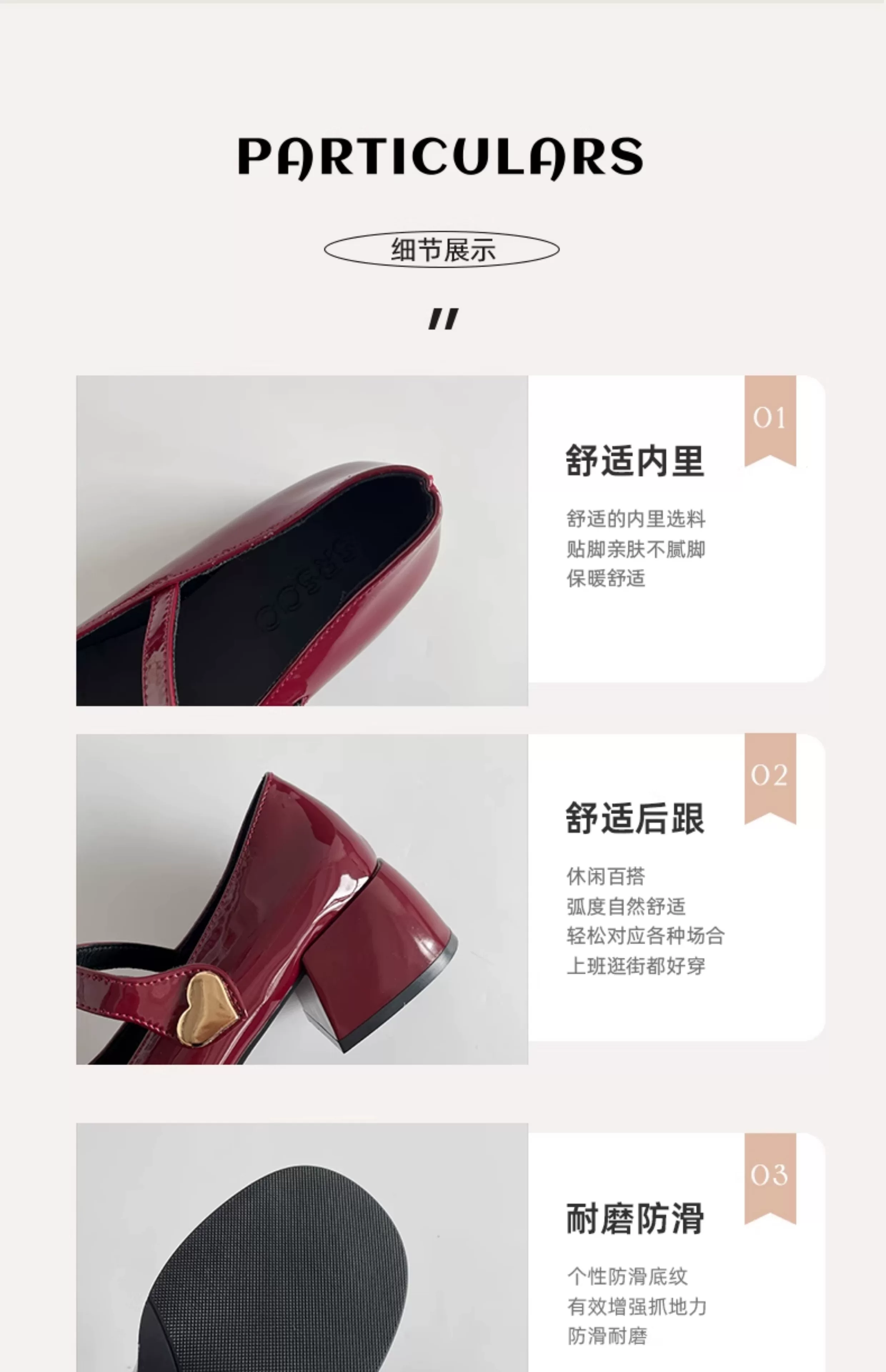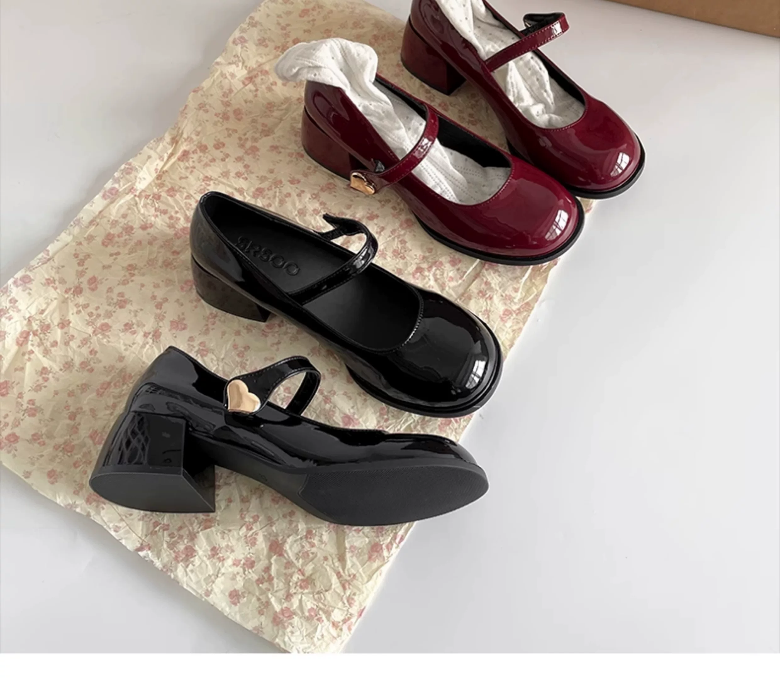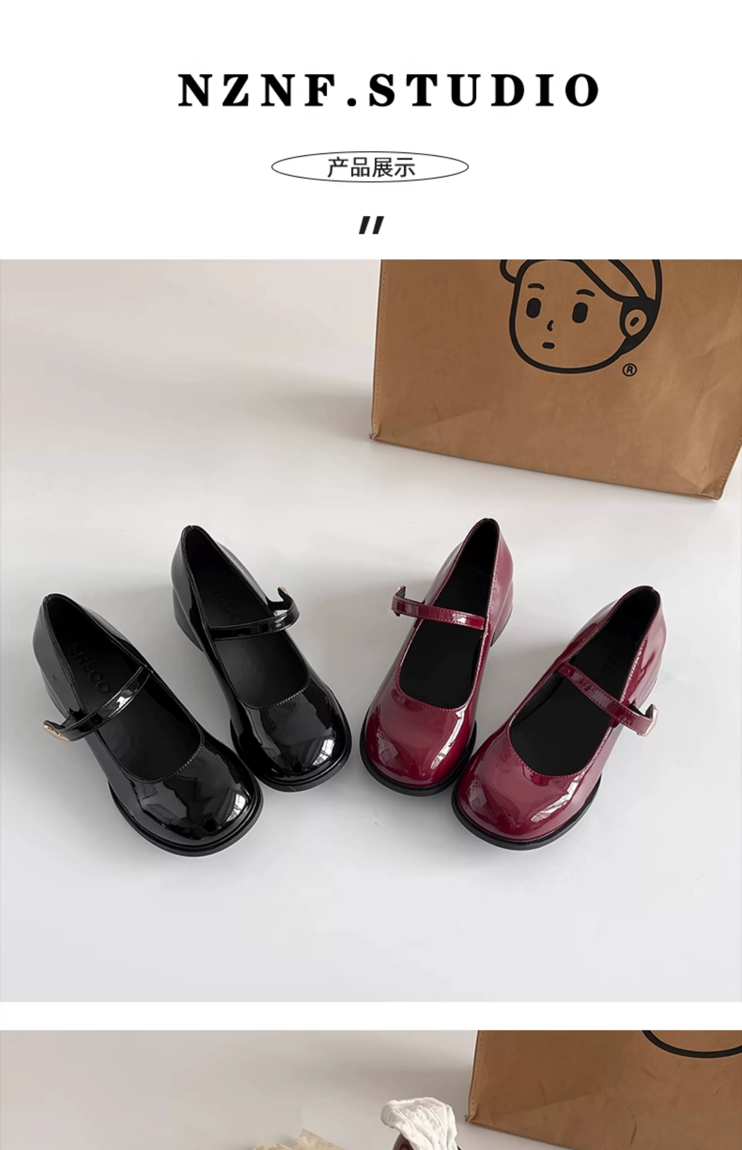 - Giày cao gót đế dày mũi tròn kiểu Pháp màu đỏ đa năng dành cho nữ, mẫu mới thu đông 2025, thích hợp phối cùng váy, giày Mary Jane tăng chiều cao.