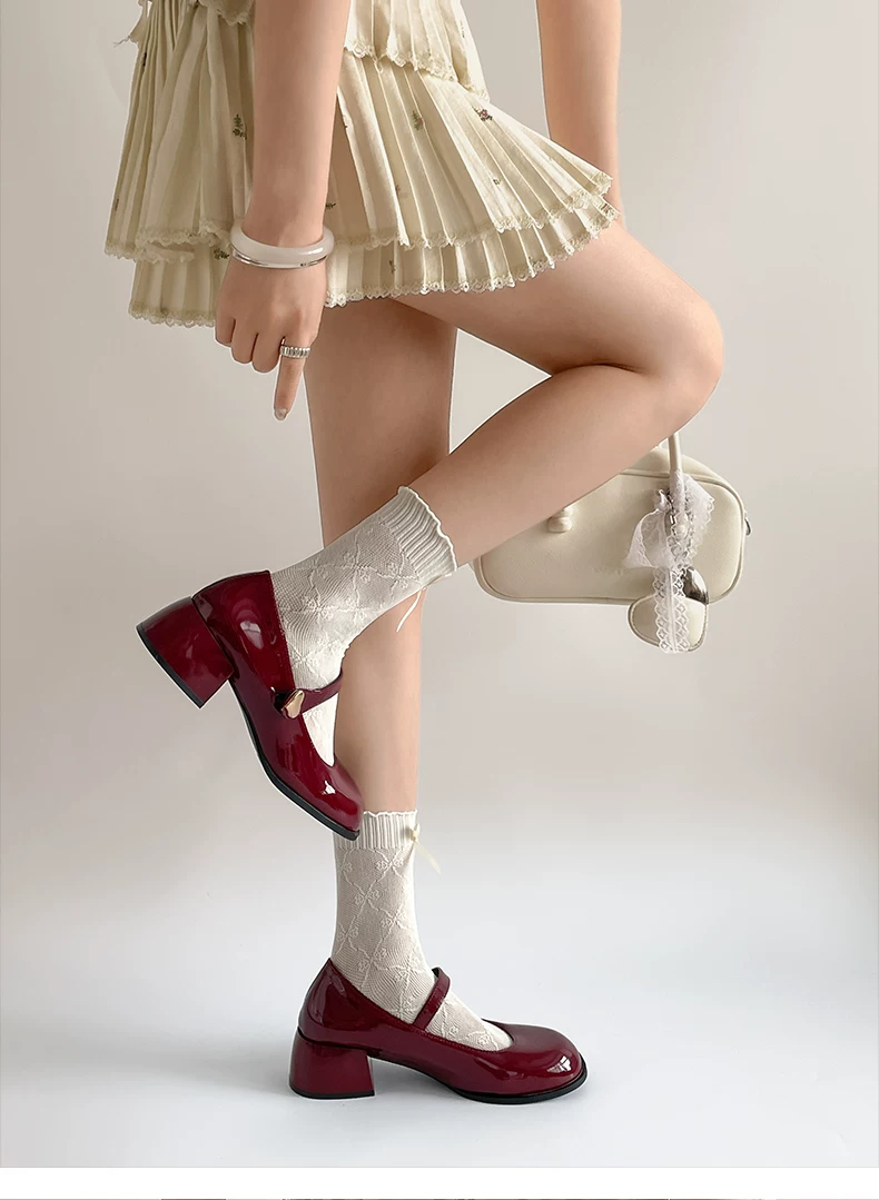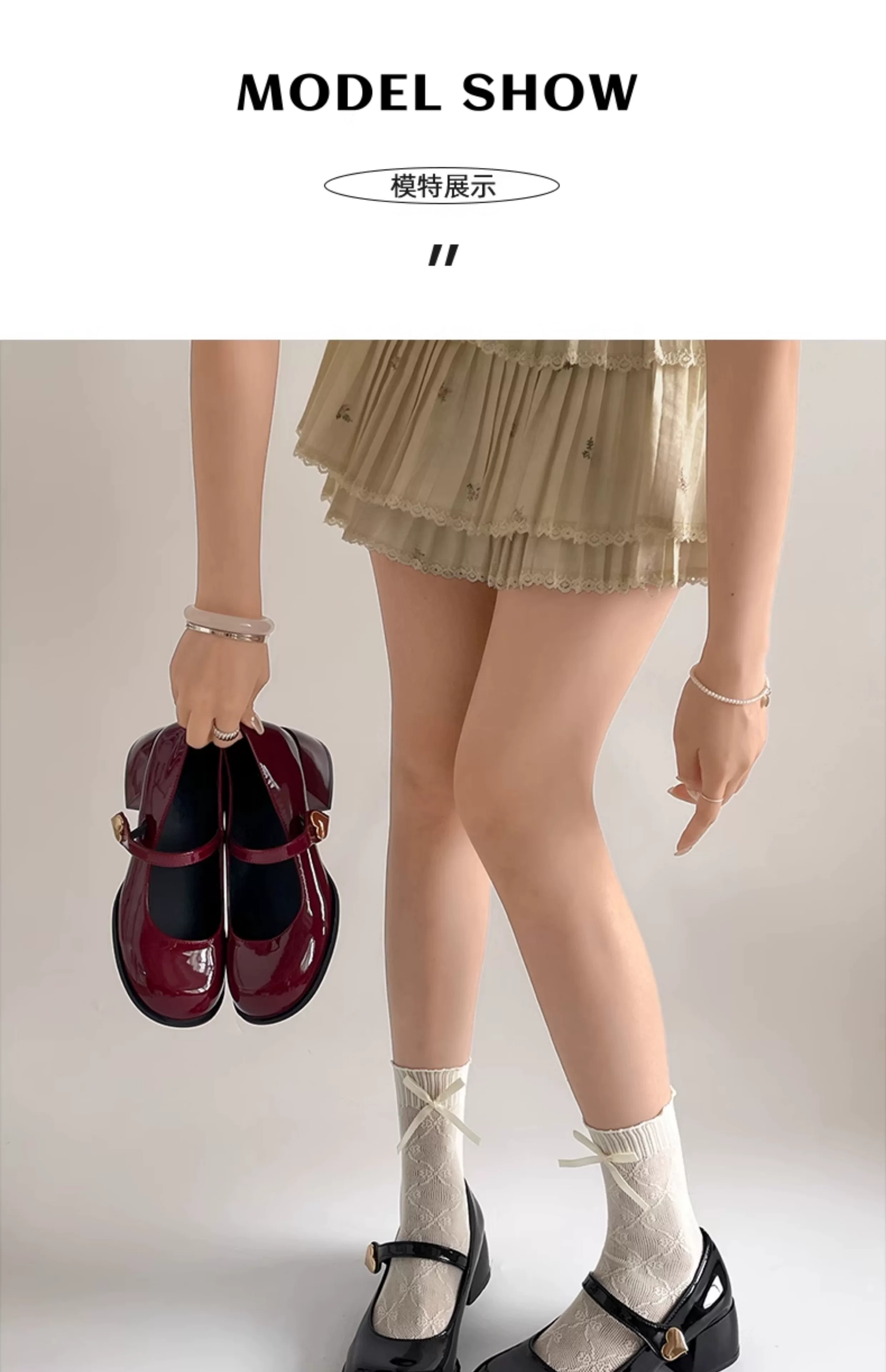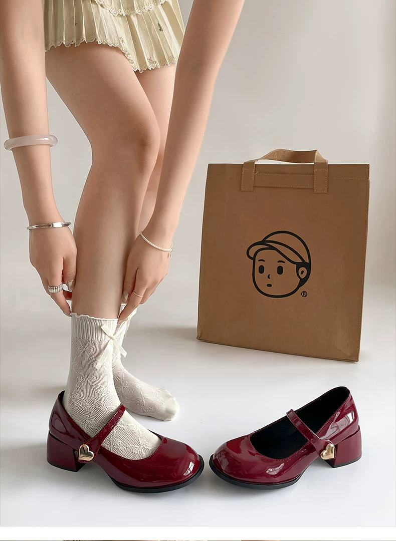 - Giày cao gót đế dày mũi tròn kiểu Pháp màu đỏ đa năng dành cho nữ, mẫu mới thu đông 2025, thích hợp phối cùng váy, giày Mary Jane tăng chiều cao.