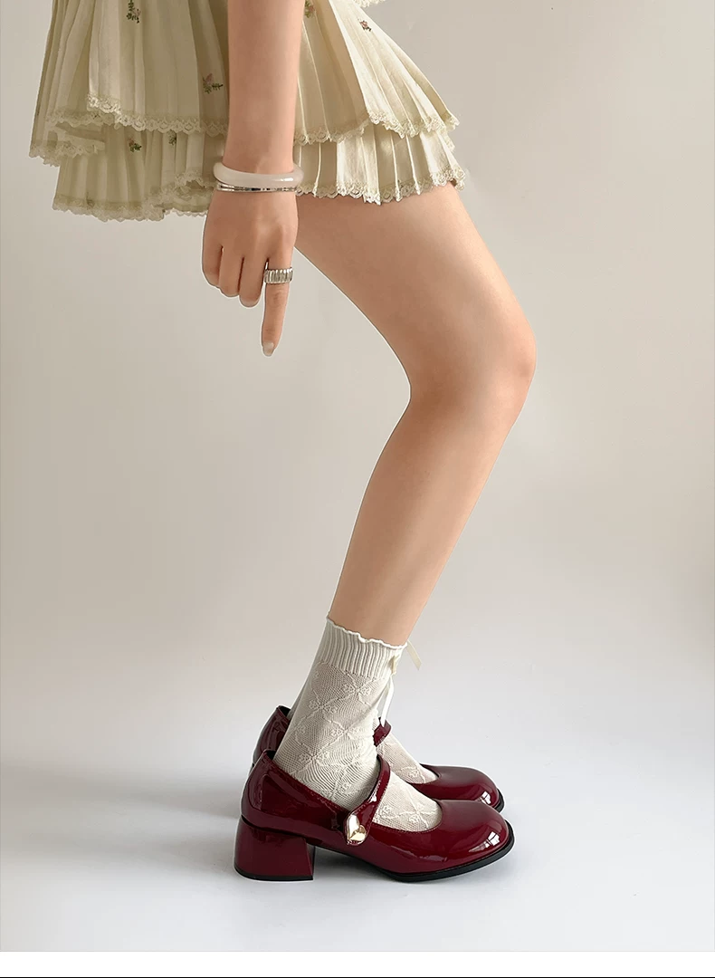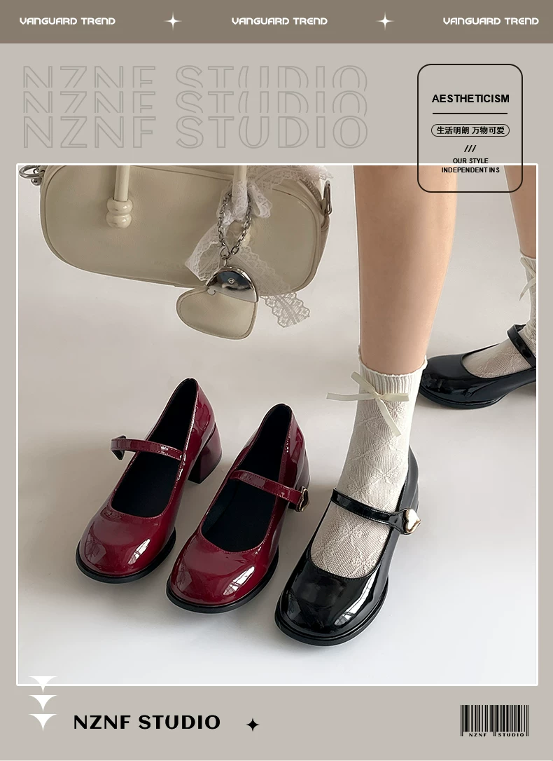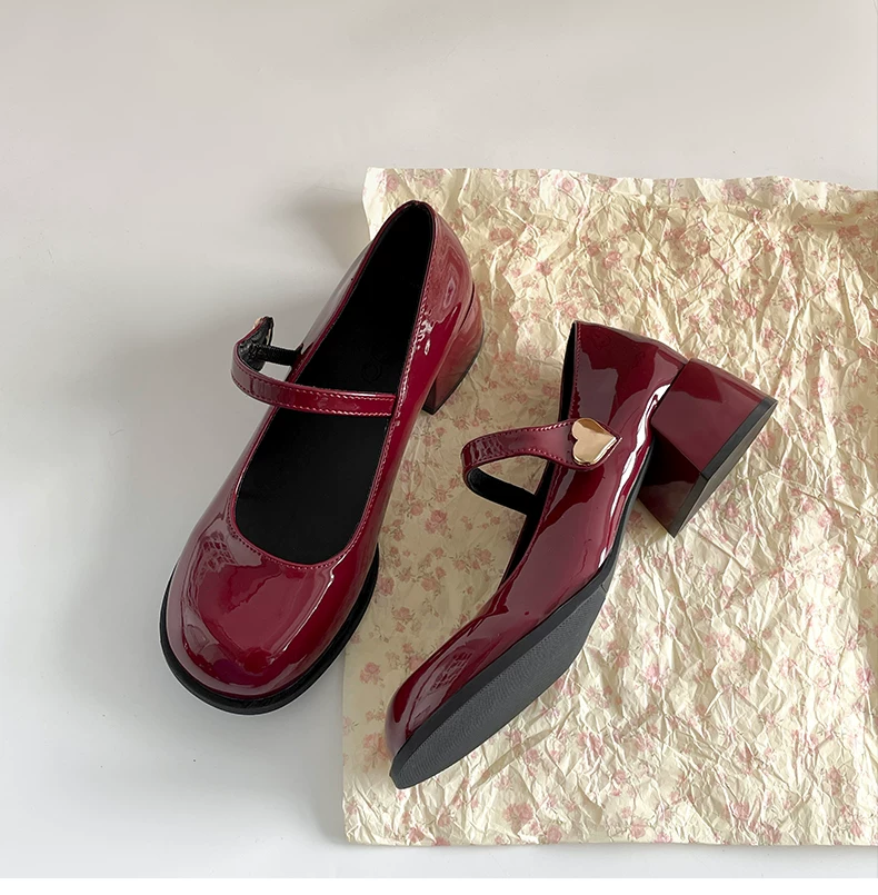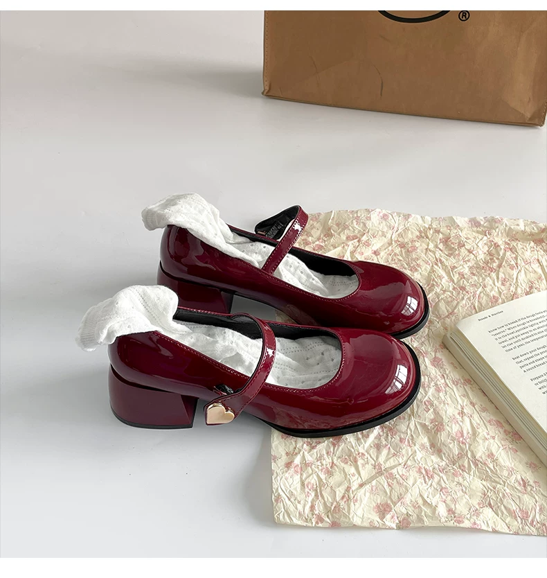 Giày cao gót đế dày mũi tròn kiểu Pháp màu đỏ đa năng dành cho nữ, mẫu mới thu đông 2025, thích hợp phối cùng váy, giày Mary Jane tăng chiều cao.