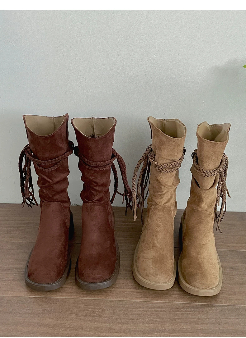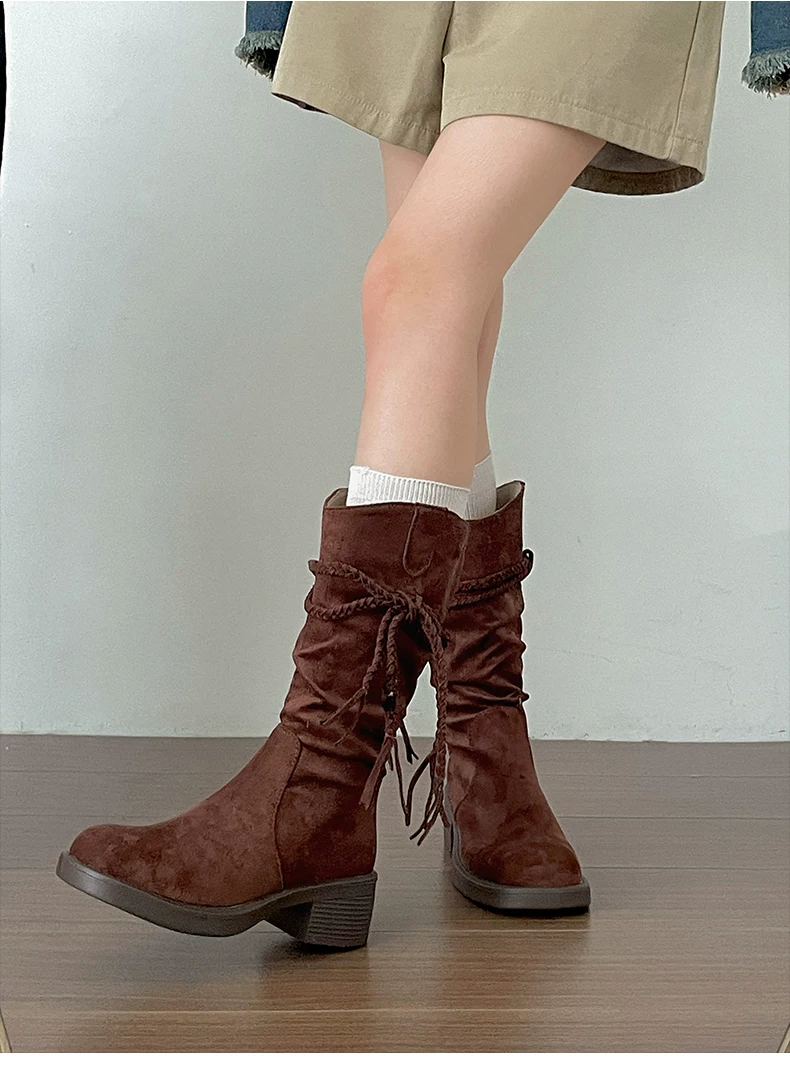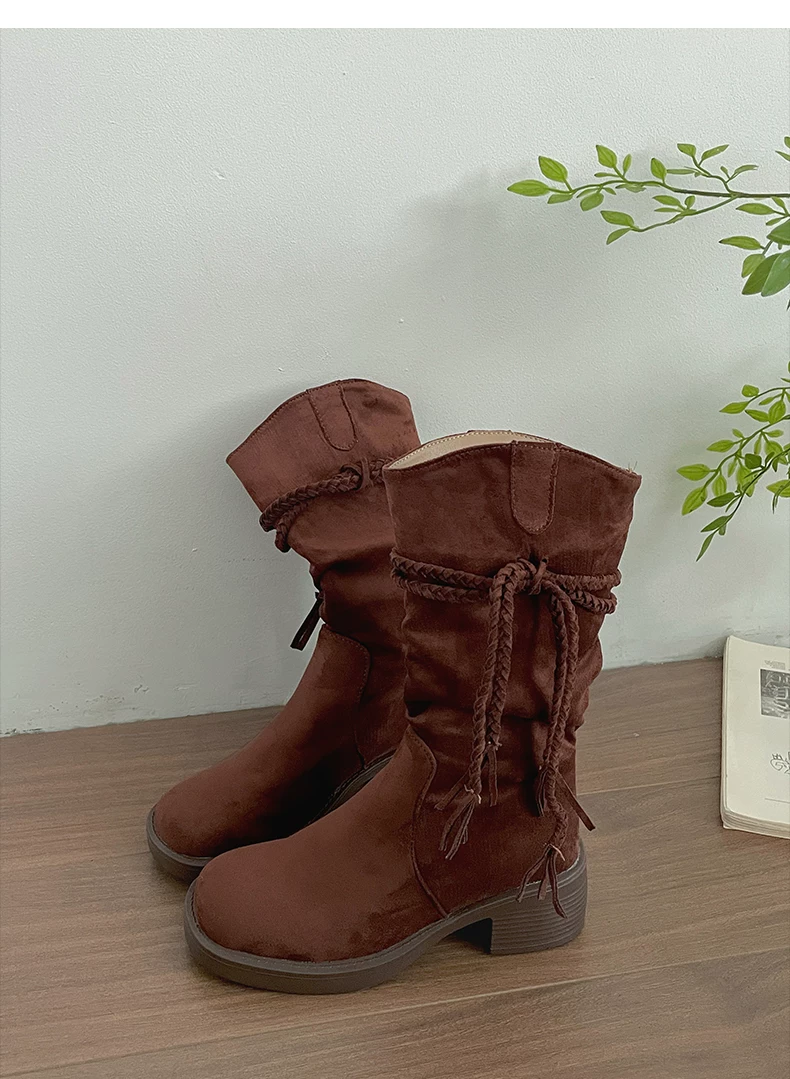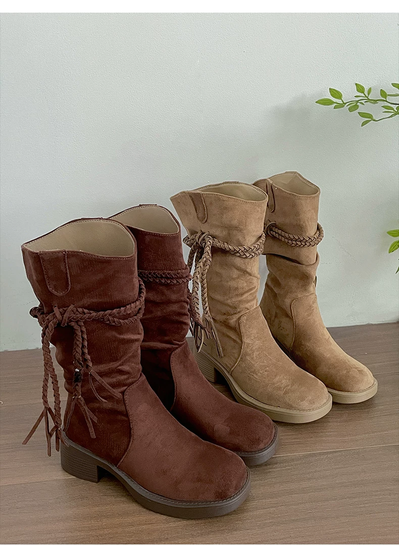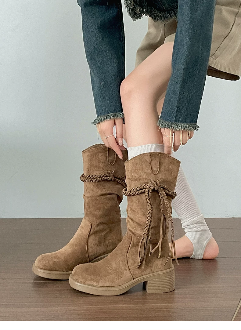- Giày cao gót kiểu cao bồi miền Tây cổ điển, giày bốt ngắn nữ, giày bốt cưỡi ngựa tăng chiều cao mùa thu/đông 2025.