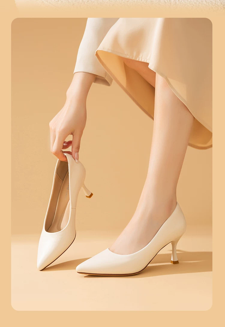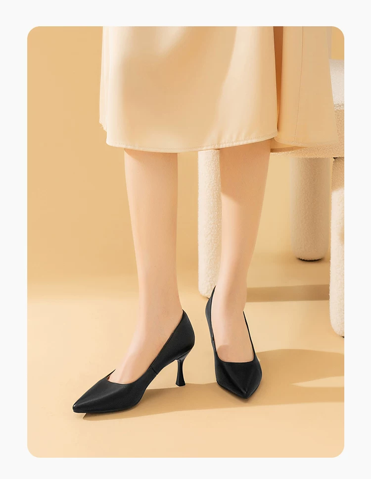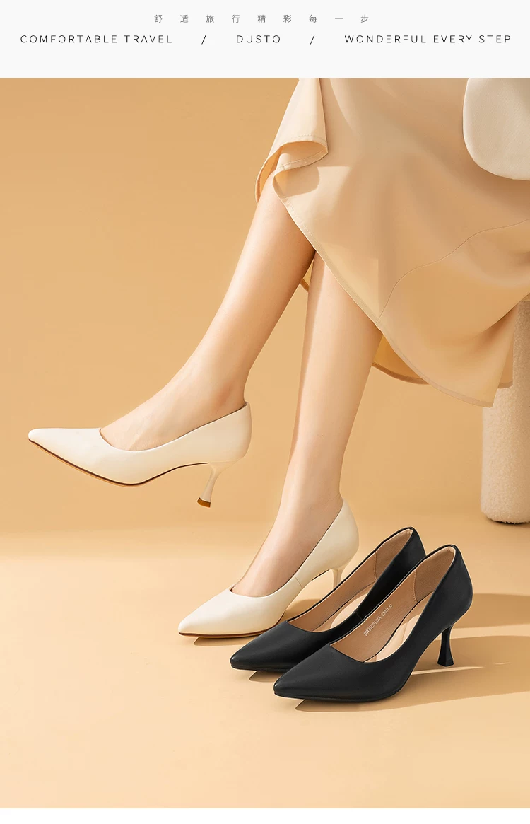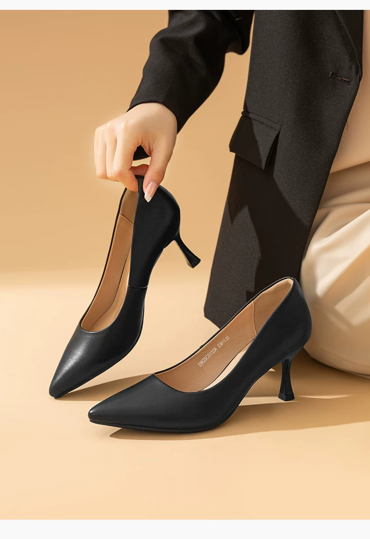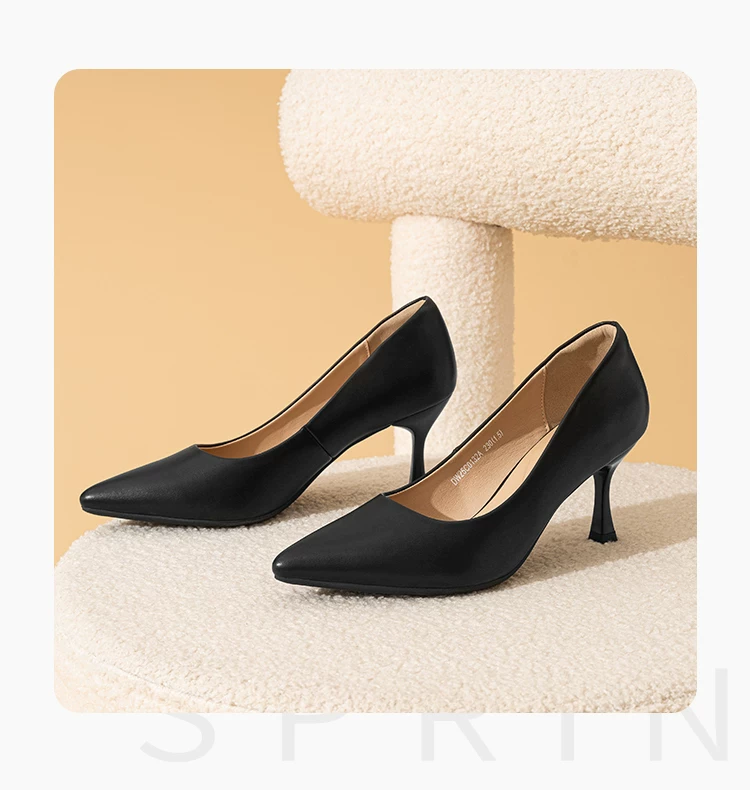 - Giày cao gót mũi nhọn Dadong, nữ tính, cao cấp, thoải mái, giày đơn màu đen mùa thu mới 2025, giày đi làm