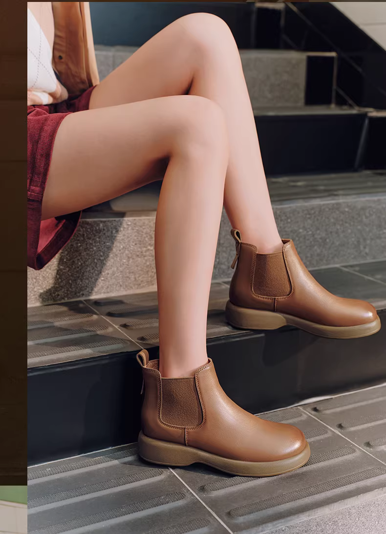 - Giày Chelsea kiểu Anh đế dày cổ điển Tianmeiyi có lông cừu, giày bốt mỏng dành cho nữ, giày bốt thời trang, bốt ngắn bằng da, kiểu dáng mới mùa đông 2025.
