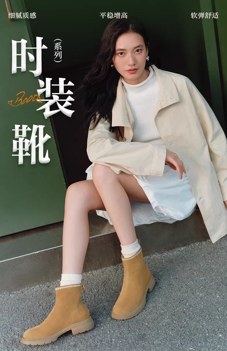 - Giày Chelsea nữ Tianmeiyi đế dày lót lông cừu kiểu cổ điển, giày bốt ngắn thời trang, giày bốt kiểu Tây, mẫu mới mùa đông 2025