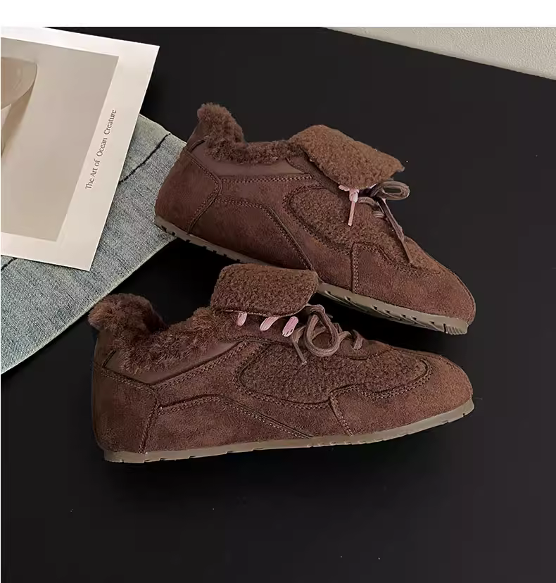 - Giày cotton đi tuyết lót lông cừu, dày dặn, ấm áp, chống trơn trượt, đế dày dành cho nữ, mặc ngoài trời mùa đông, mẫu mới 2025, tăng chiều cao, giày tập cổ điển kiểu Đức.