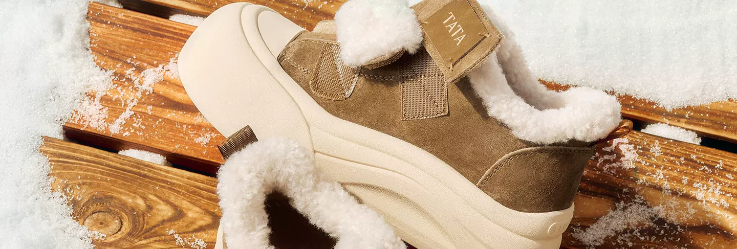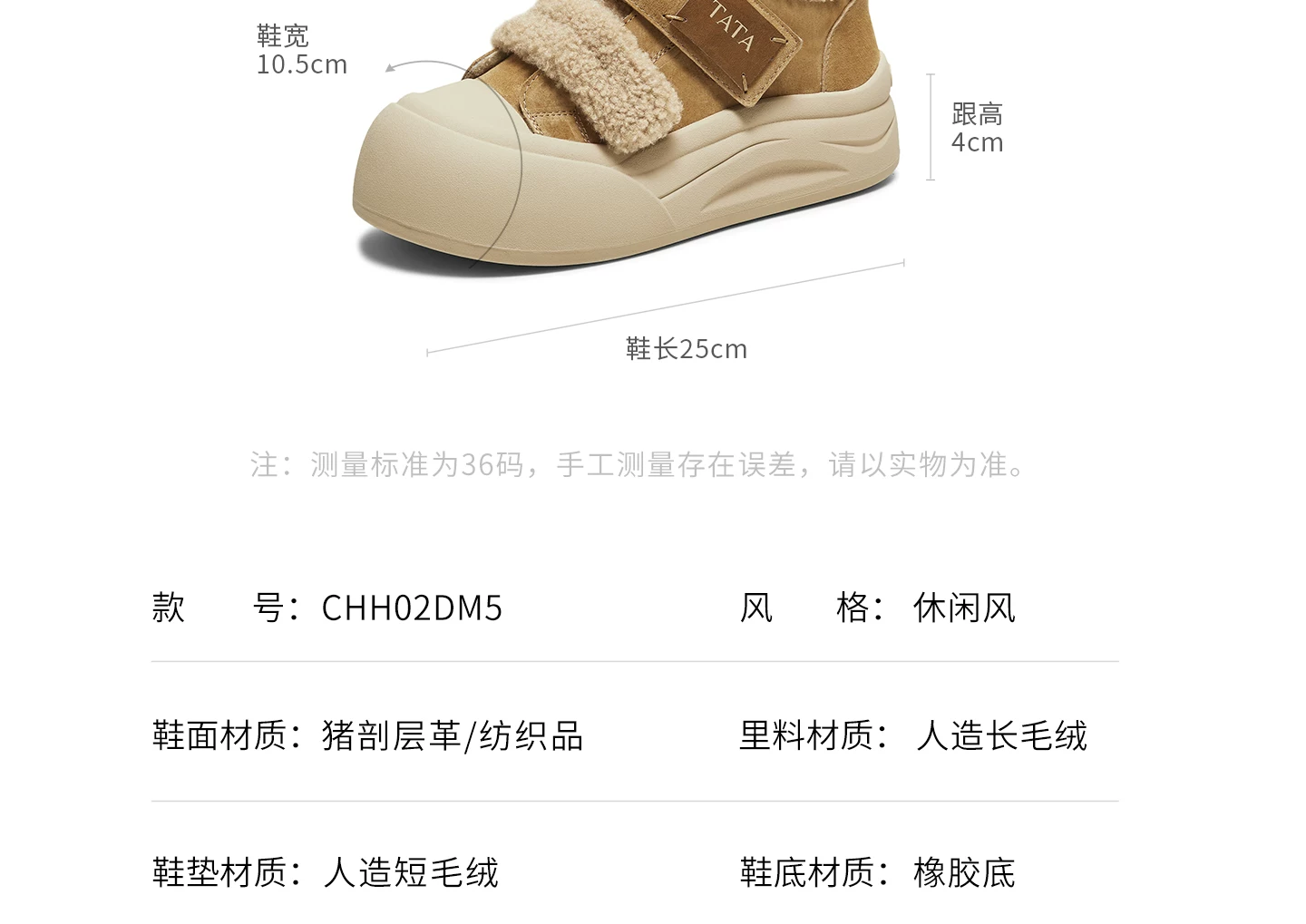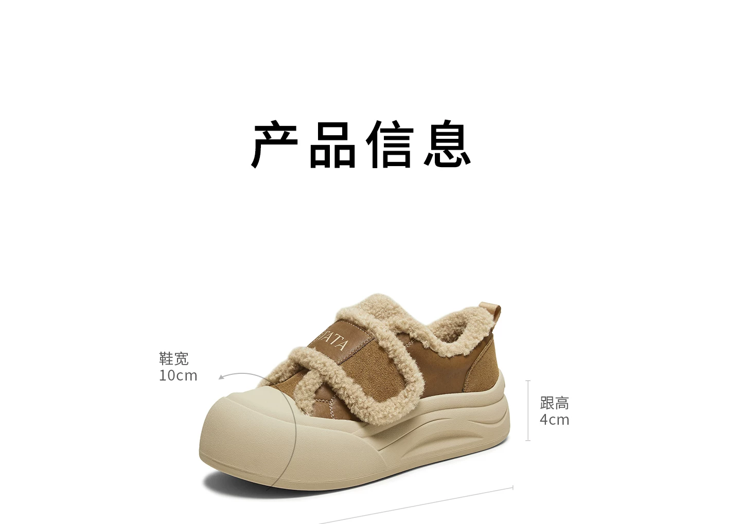 - Giày cotton mùa đông nữ TATA, giày lười mũi rộng, giày đế dày có lót lông, giày đế lông CHH01DM5