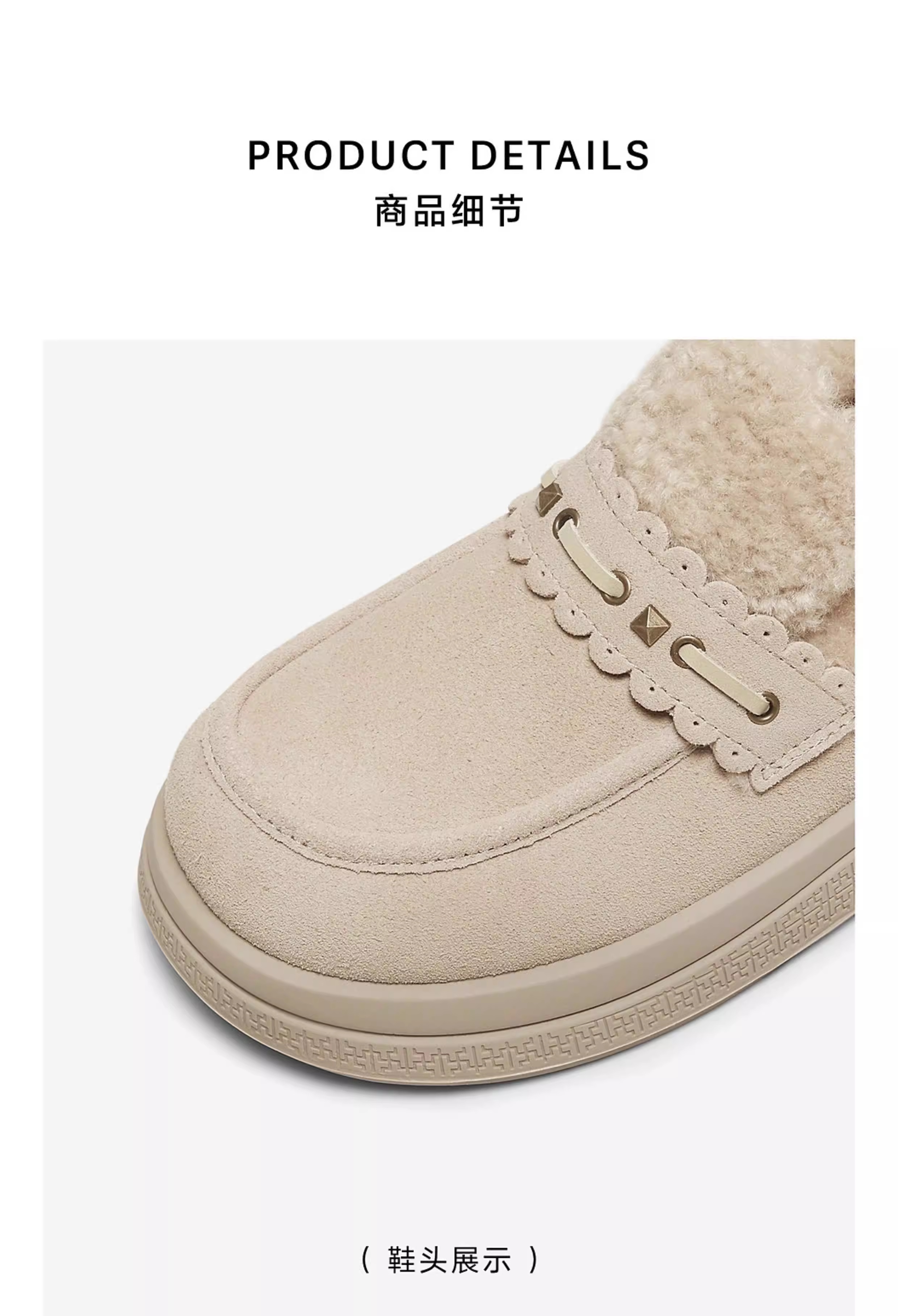 - Giày cotton nữ TATA 2025 Giày lông đế dày mới Giày nữ có lót lông cừu Giày cotton ấm áp Giày đơn YPF04DM5