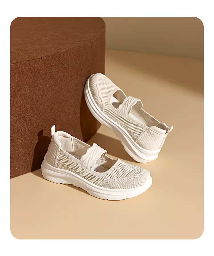 - Giày của mẹ Dadong, giày Mary Jane đế mềm chống trượt mùa thu, giày đi bộ nhẹ và thoáng khí cho người già, giày dệt kim cho nữ.