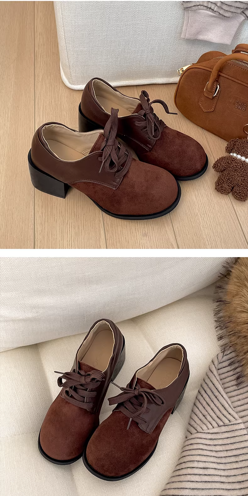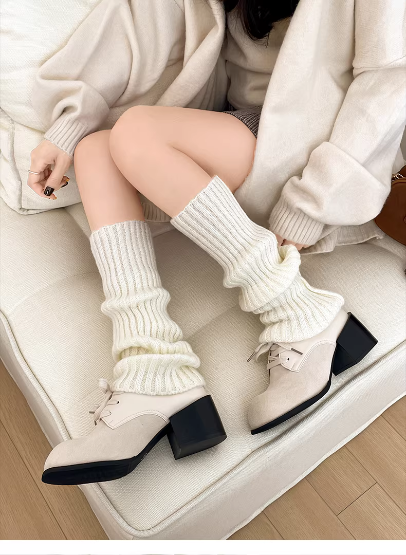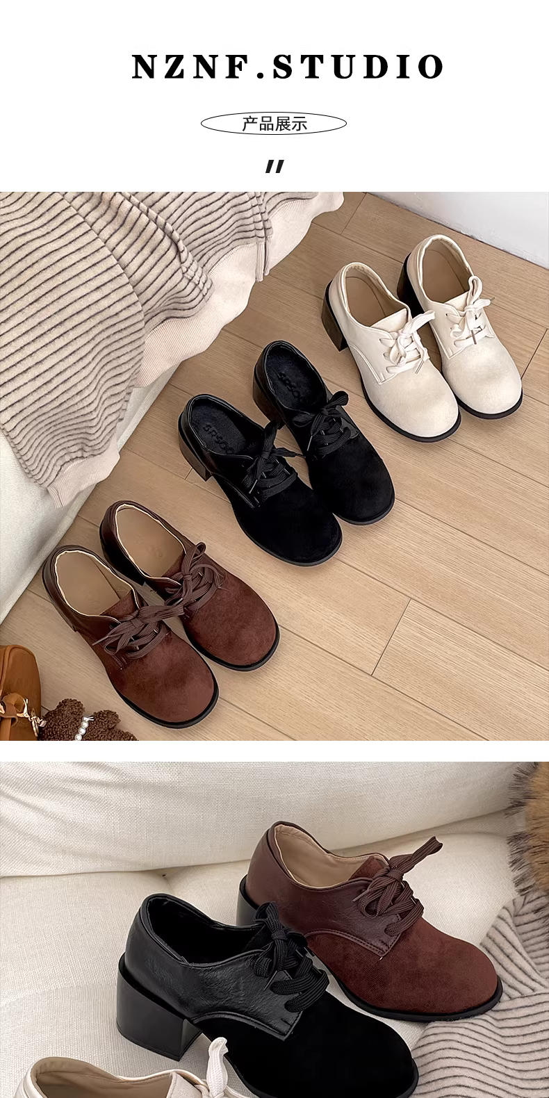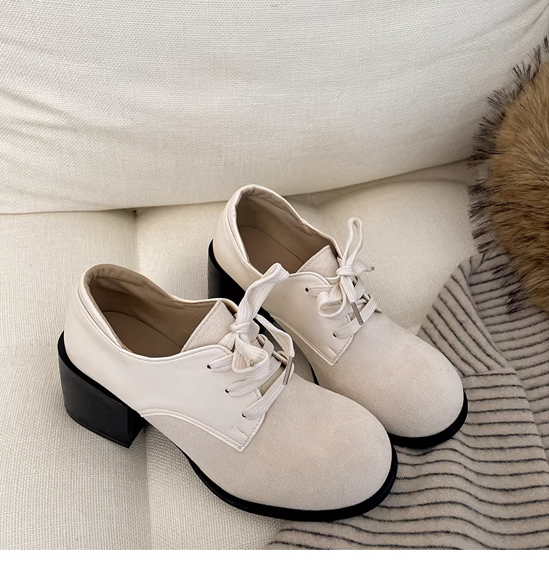 - Giày da cao gót chunky kiểu Anh cổ điển màu trắng dành cho nữ, mẫu thu đông 2025 mới, đa năng và tăng chiều cao, phù hợp phối cùng chân váy.