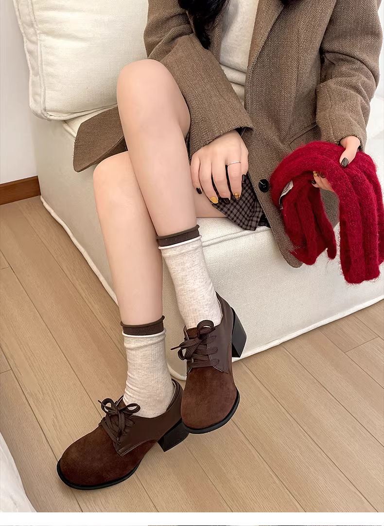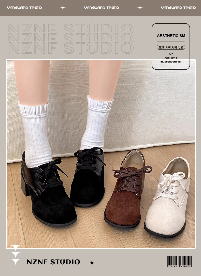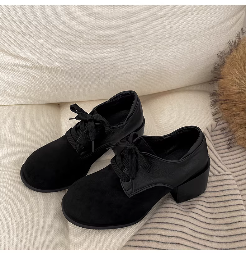 Giày da cao gót chunky kiểu Anh cổ điển màu trắng dành cho nữ, mẫu thu đông 2025 mới, đa năng và tăng chiều cao, phù hợp phối cùng chân váy.