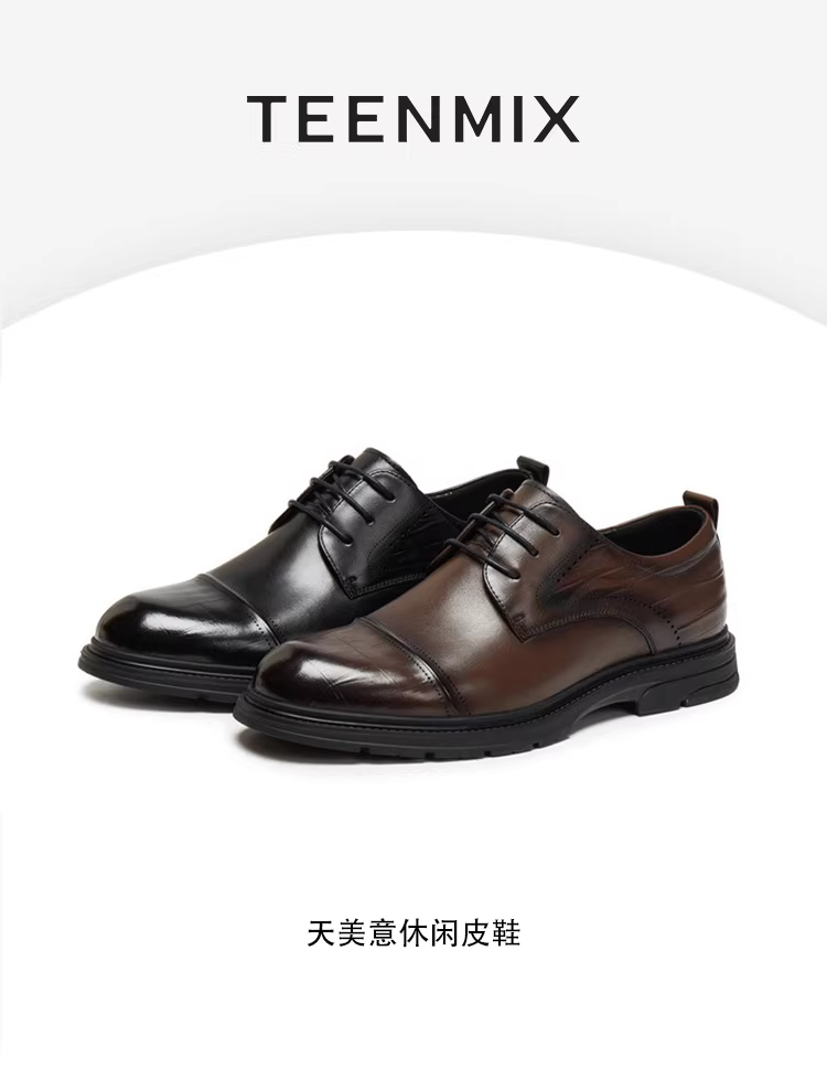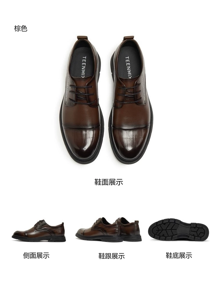 - Giày da công sở nam kiểu dáng mới Thu 2025 Tianmeiyi, cùng mẫu, màu trơn, dây buộc, 3WS01CM5
