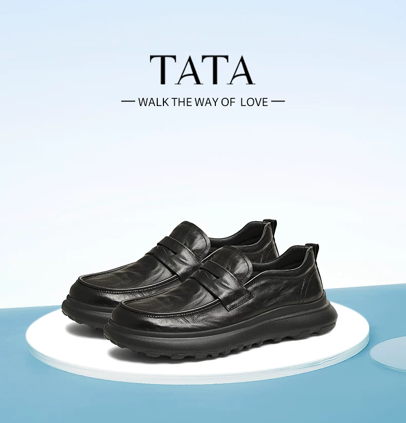- Giày da công sở thông thường dành cho nam Tata, giày lười kiểu slip-on, giày lười da thật, giày bố TFE02DM4
