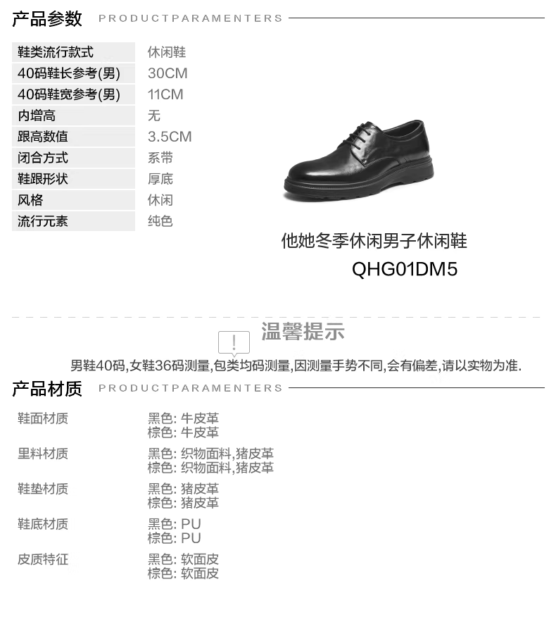 - Giày da nam TATA mùa đông 2025 màu trơn thoải mái đa năng giày thường nam giày mới QHG01DM5