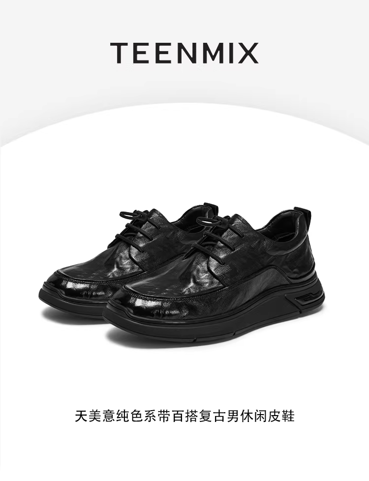 Giày da nam thời trang mùa đông Tianmeiyi 2025 kiểu dáng mới, cùng mẫu, màu trơn, dây buộc, đa năng, phong cách retro, mã WNA01DM5