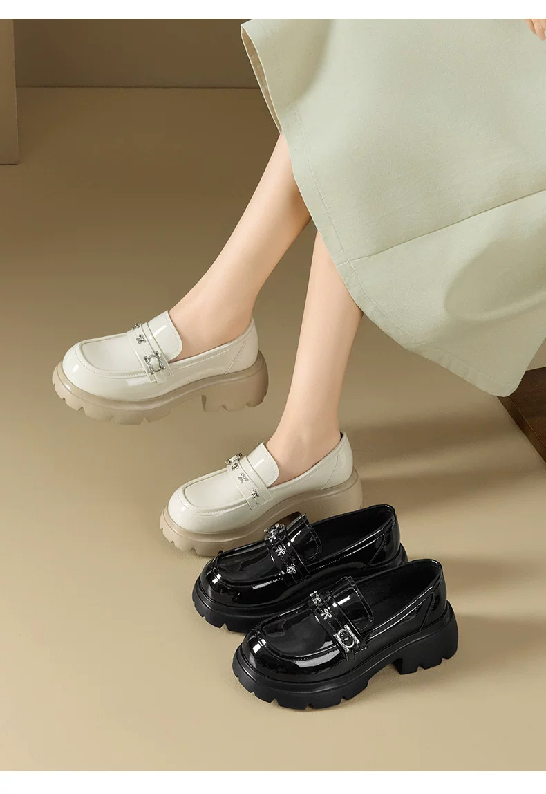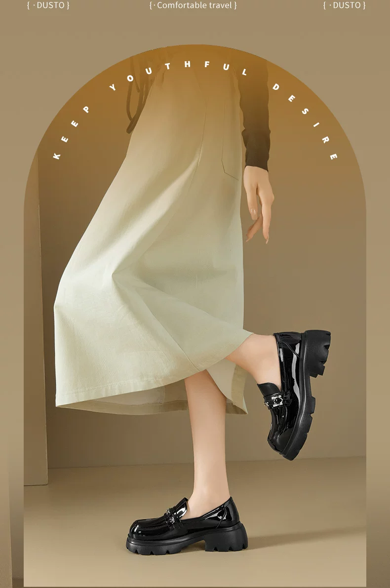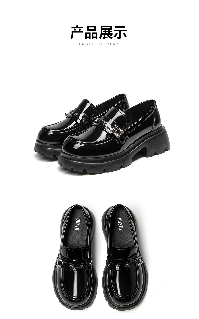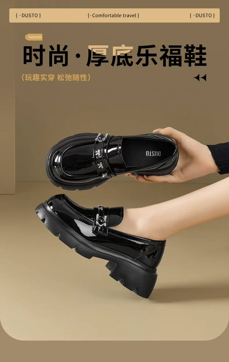 - Giày da nhỏ bằng da bóng đen Dadong dành cho nữ 2025, mẫu mới thu đông, đế dày, kiểu lười đa năng, gót thô, mũi tròn, giày đơn giản phong cách JK