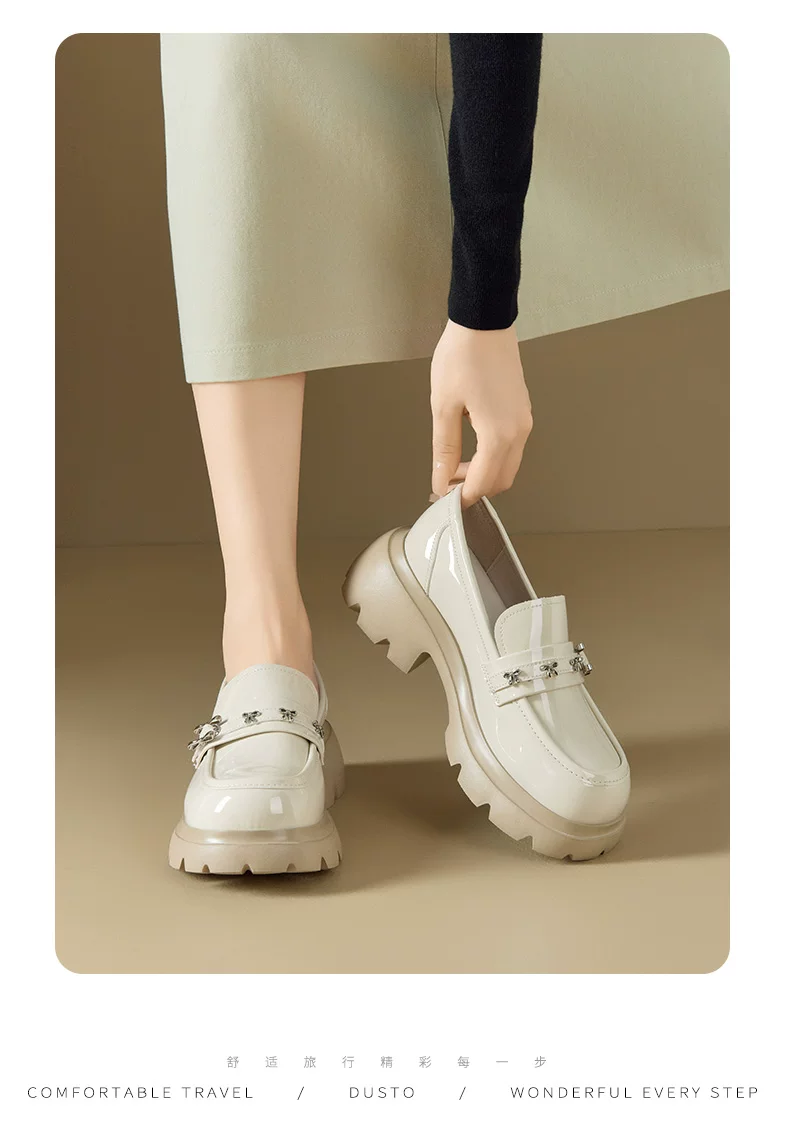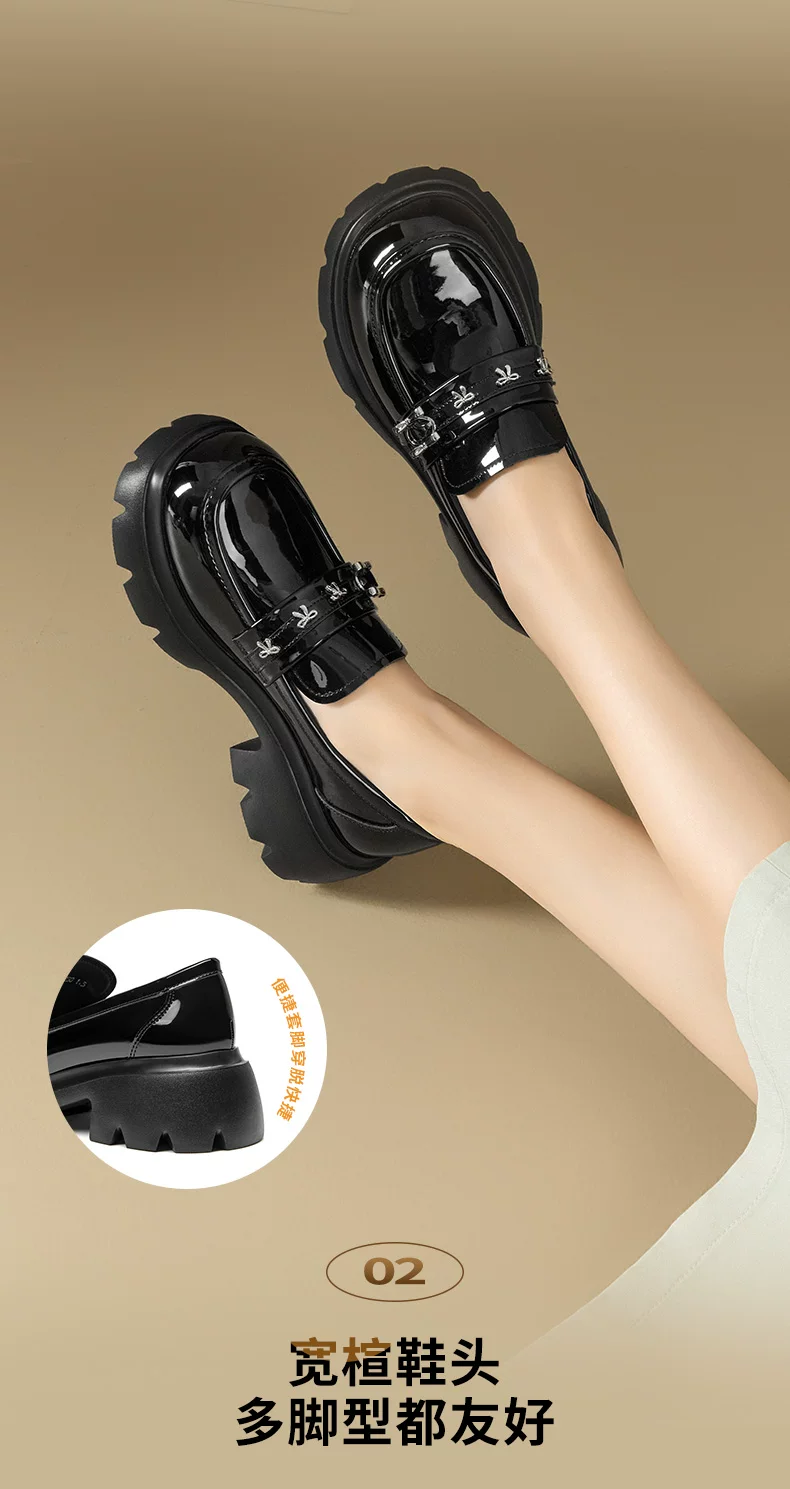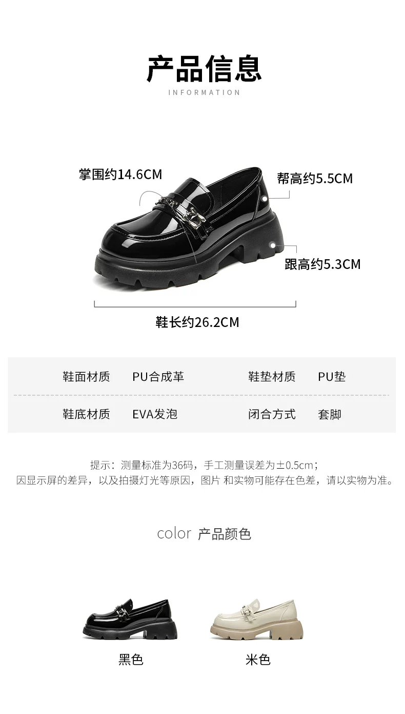 - Giày da nhỏ bằng da bóng đen Dadong dành cho nữ 2025, mẫu mới thu đông, đế dày, kiểu lười đa năng, gót thô, mũi tròn, giày đơn giản phong cách JK