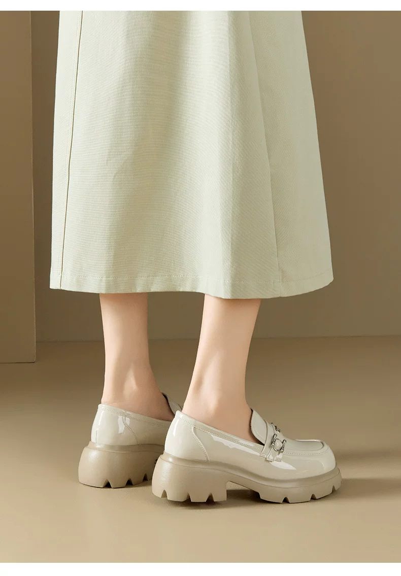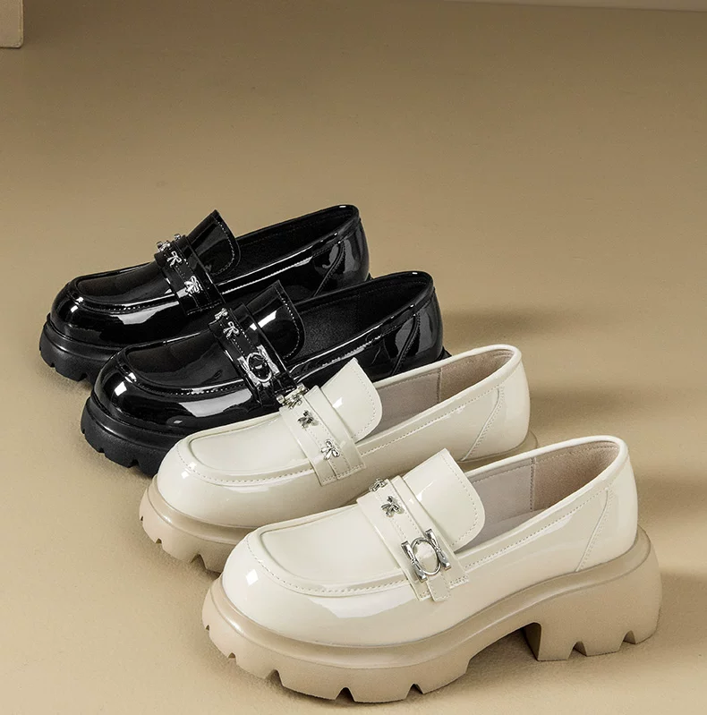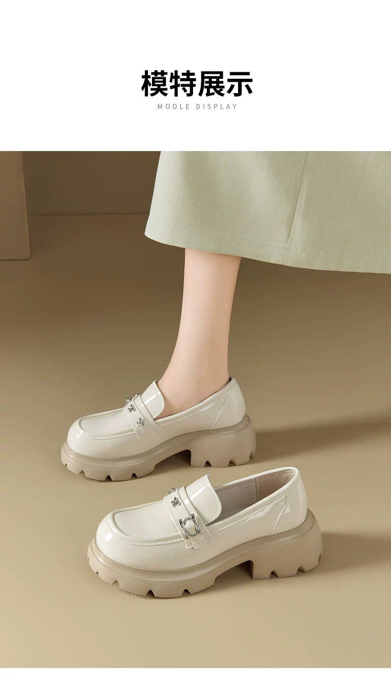 Giày da nhỏ bằng da bóng đen Dadong dành cho nữ 2025, mẫu mới thu đông, đế dày, kiểu lười đa năng, gót thô, mũi tròn, giày đơn giản phong cách JK