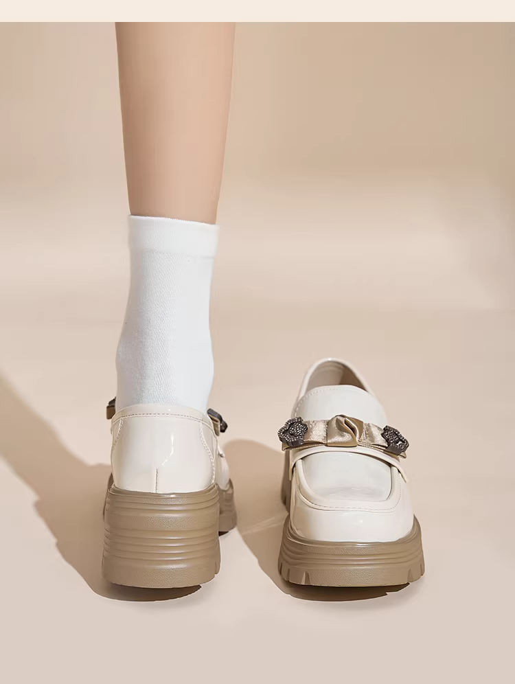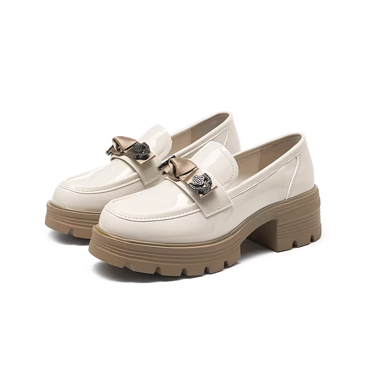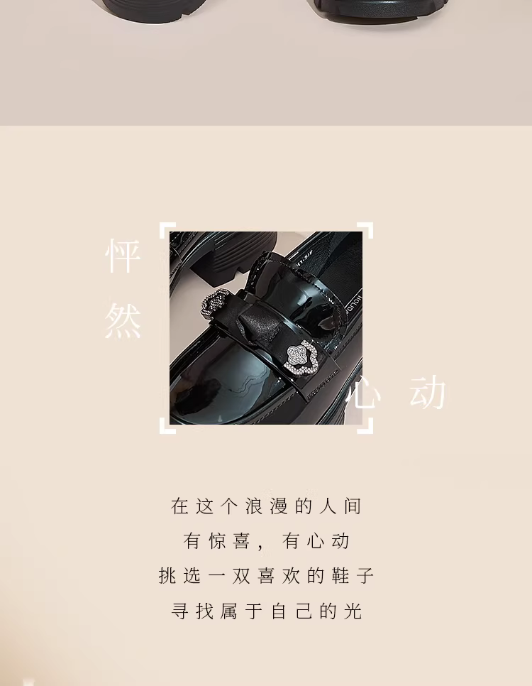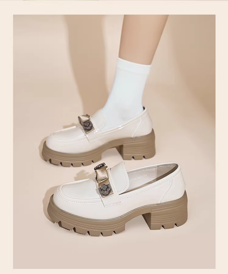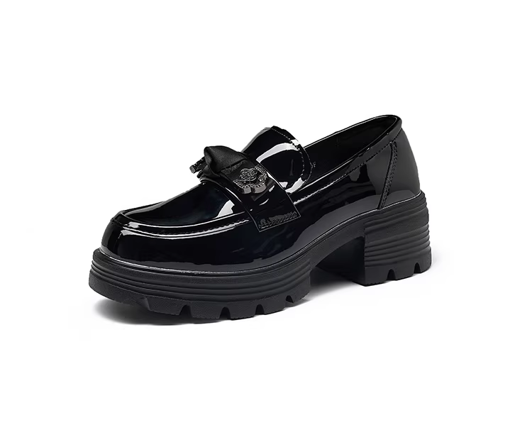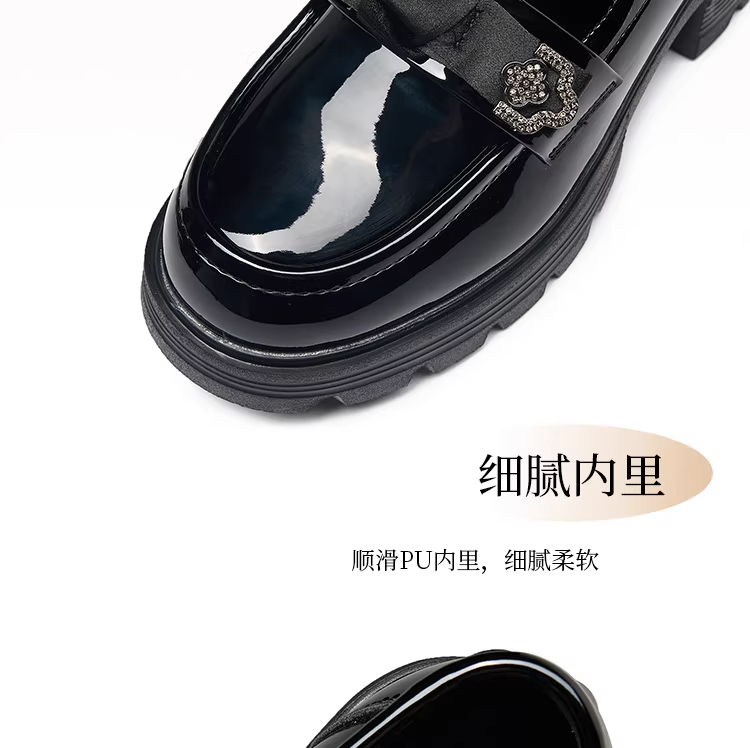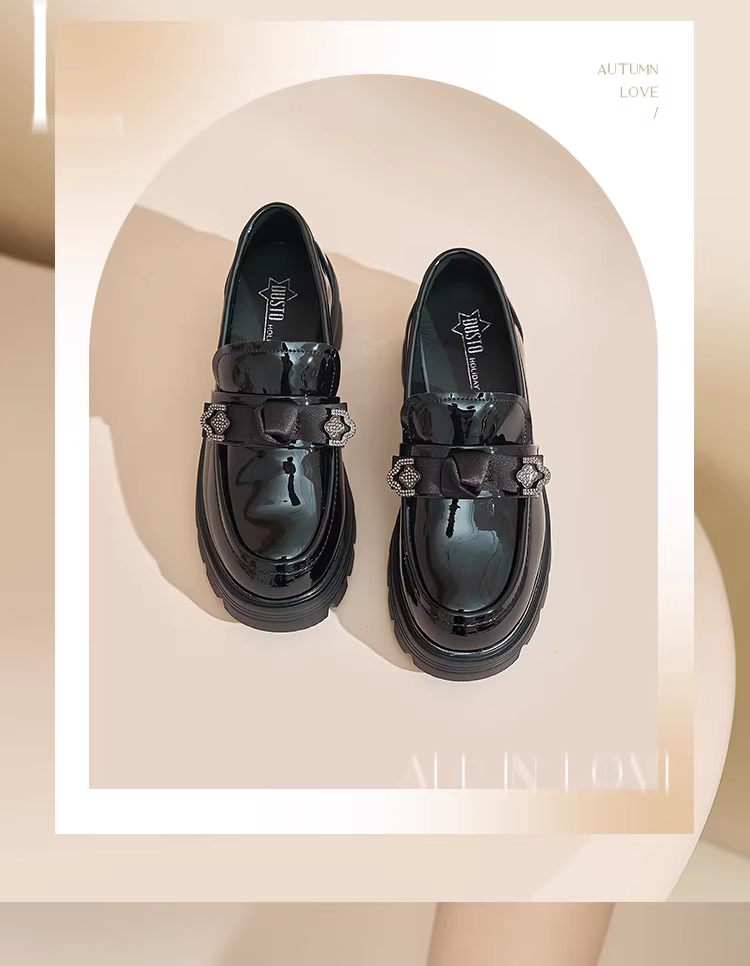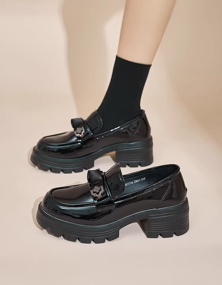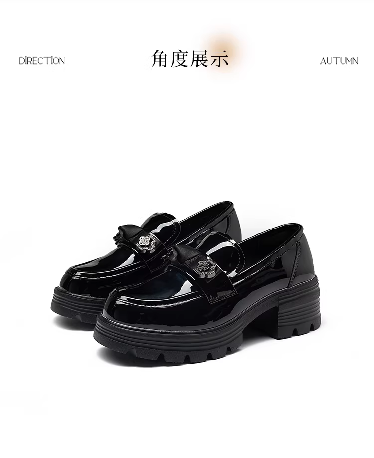 - Giày da nhỏ kiểu Anh Dadong màu đen dành cho nữ, mẫu mới thu đông 2025, mũi tròn, mũi rộng, đế dày, chất liệu da bóng.