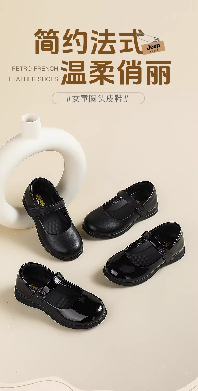 - Giày da nữ sinh Jeep, giày đế mềm chống trơn trượt, giày công chúa trẻ em mùa thu mới 2025, giày biểu diễn cho trẻ lớn.