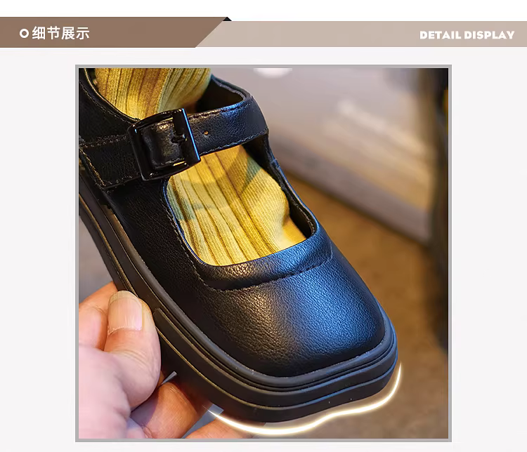 - Giày da thật nữ bé gái xuân thu 2025 kiểu Anh đế mềm giày đơn trẻ em màu đen giày retro trẻ em