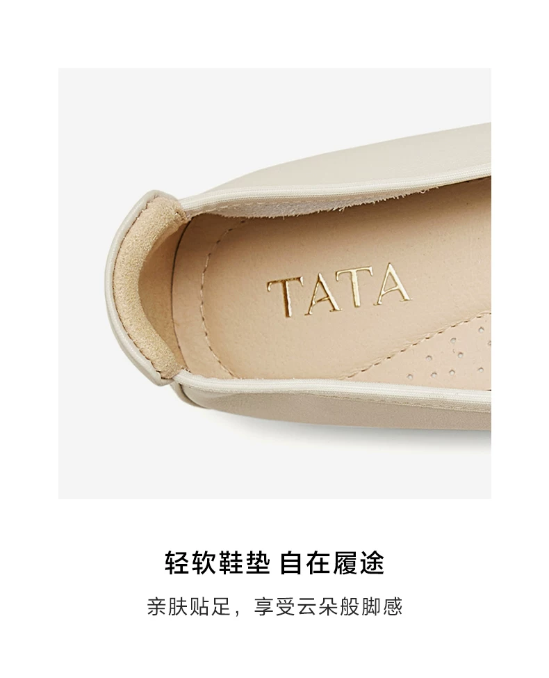 Giày đế bằng màu be TATA dành cho nữ Giày công sở đi làm Giày nữ buổi tối mẫu mới XGJ04AQ5