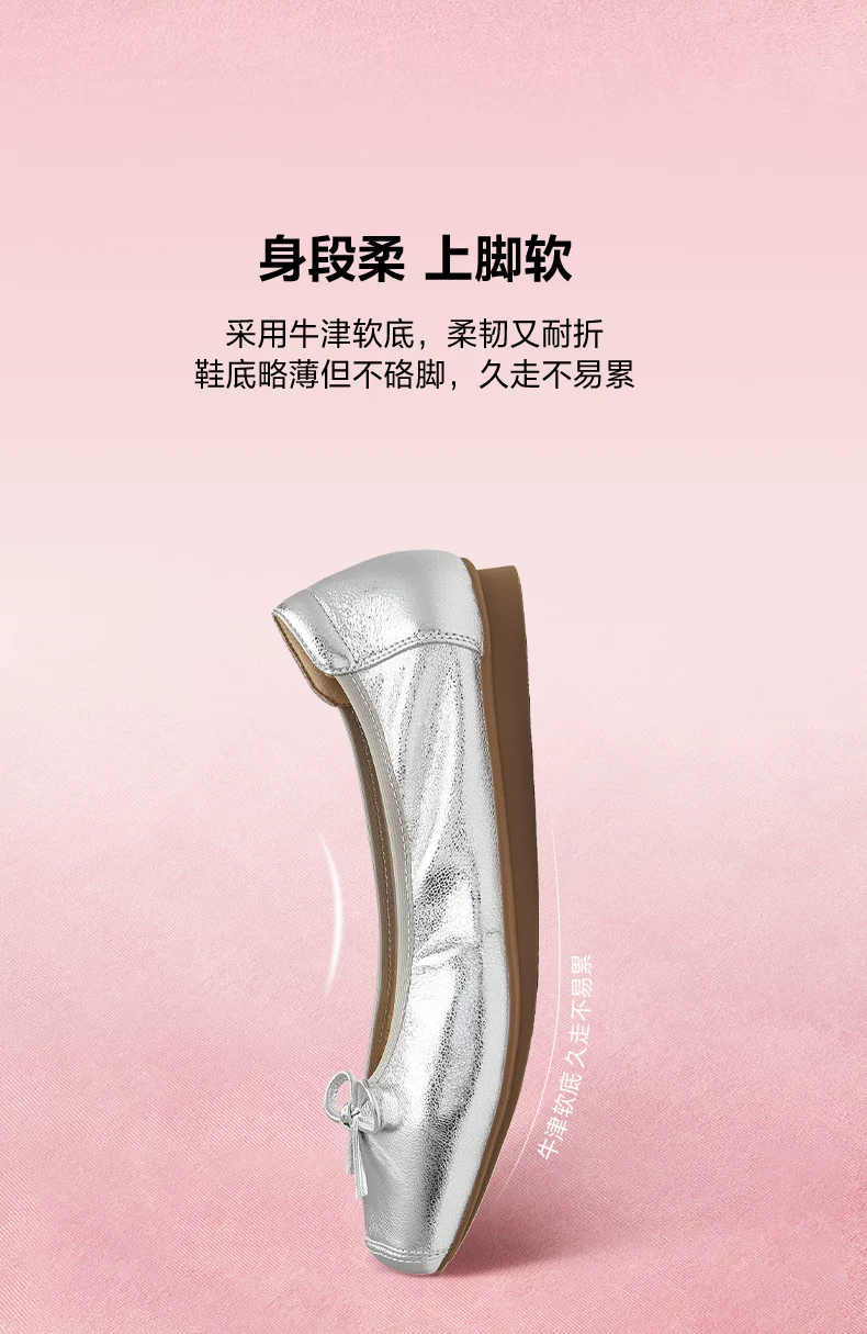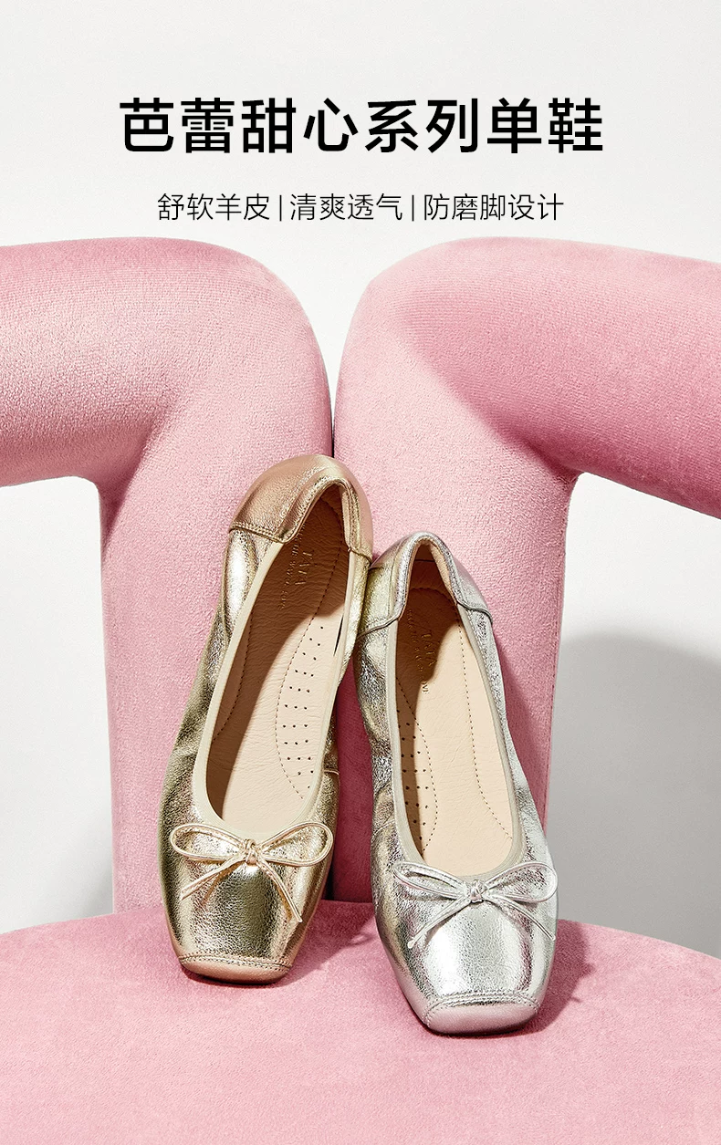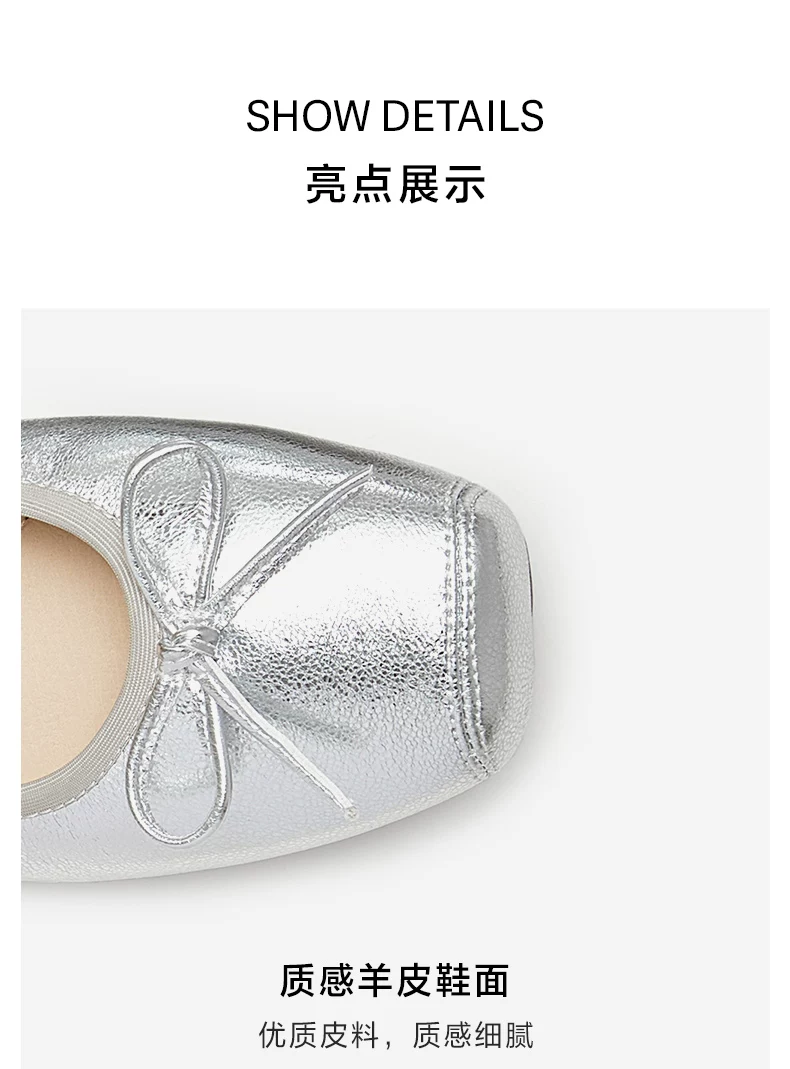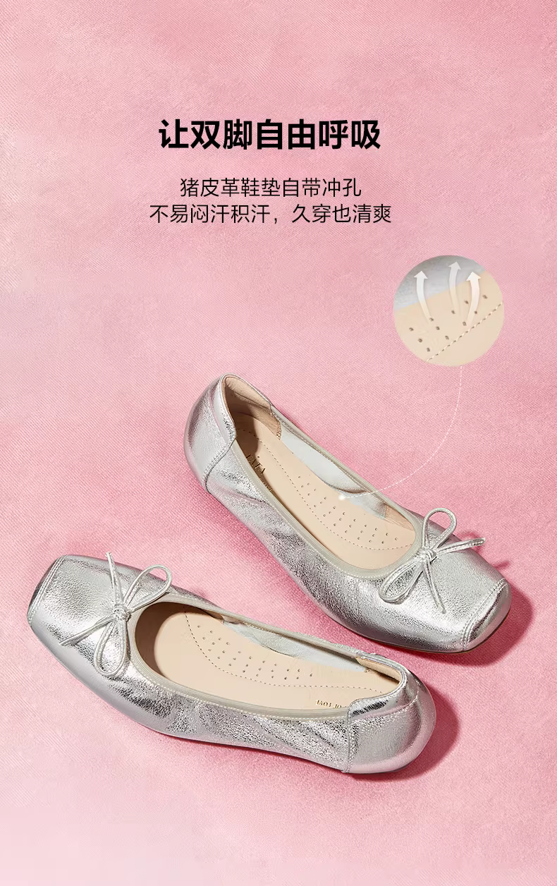 - Giày đế mềm TATA Silver Ballet Flats Giày đế mềm cho nữ Giày da cừu UUY01CQ5