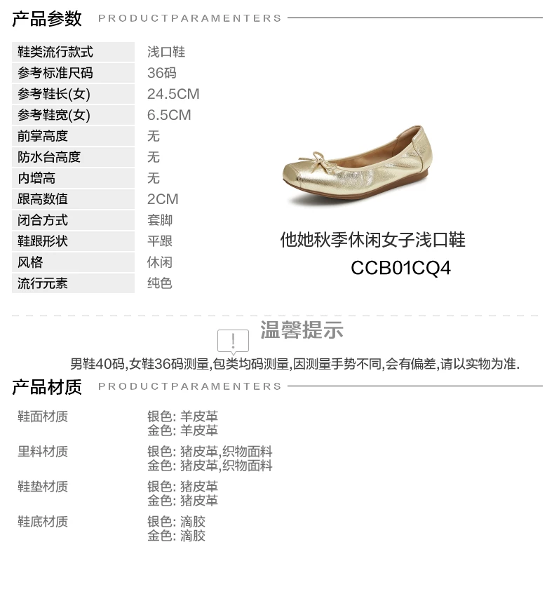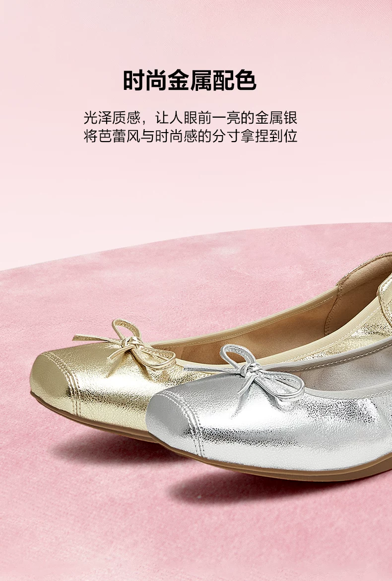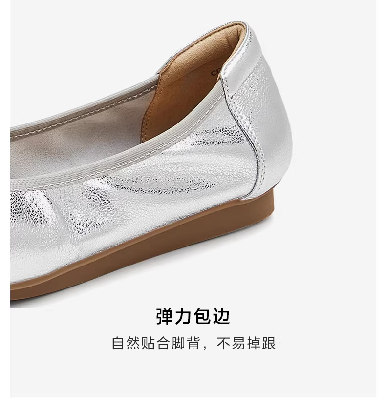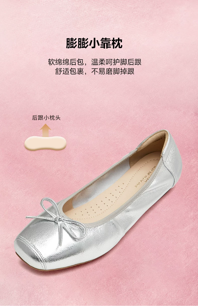 - Giày đế mềm TATA Silver Ballet Flats Giày đế mềm cho nữ Giày da cừu UUY01CQ5