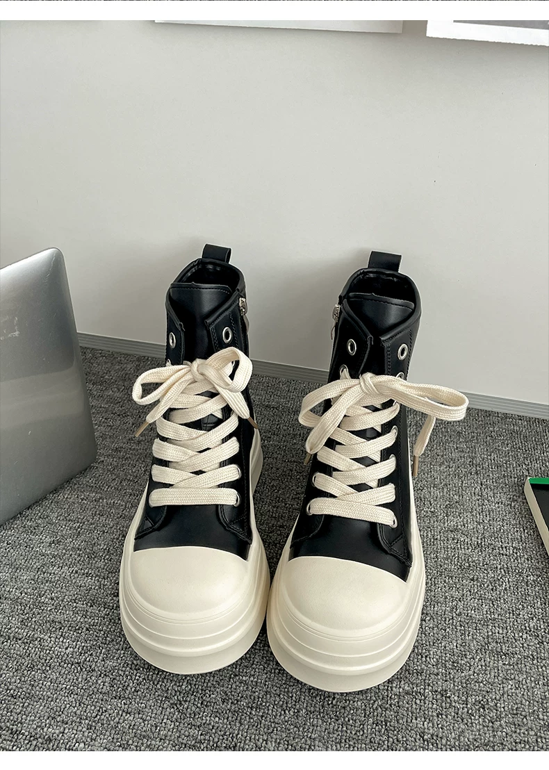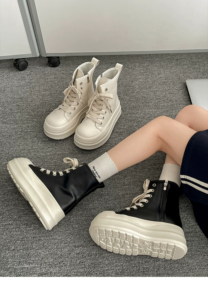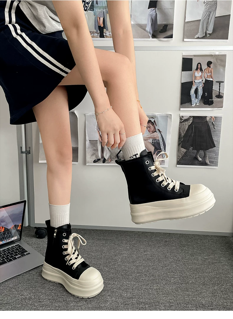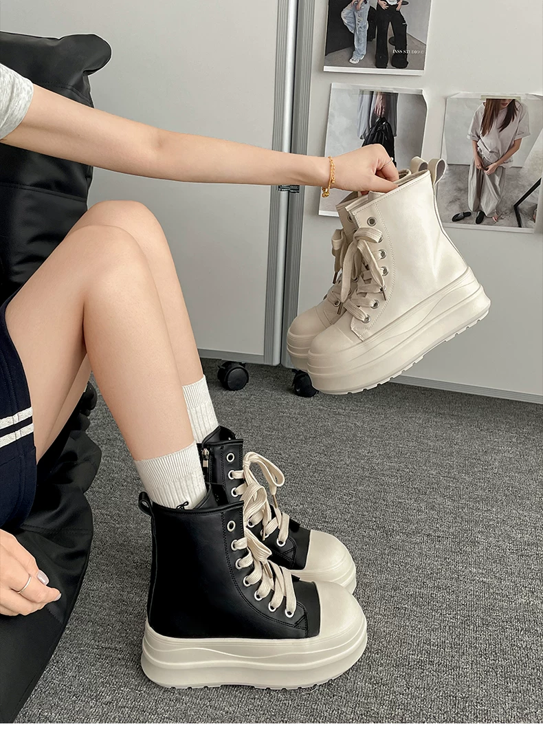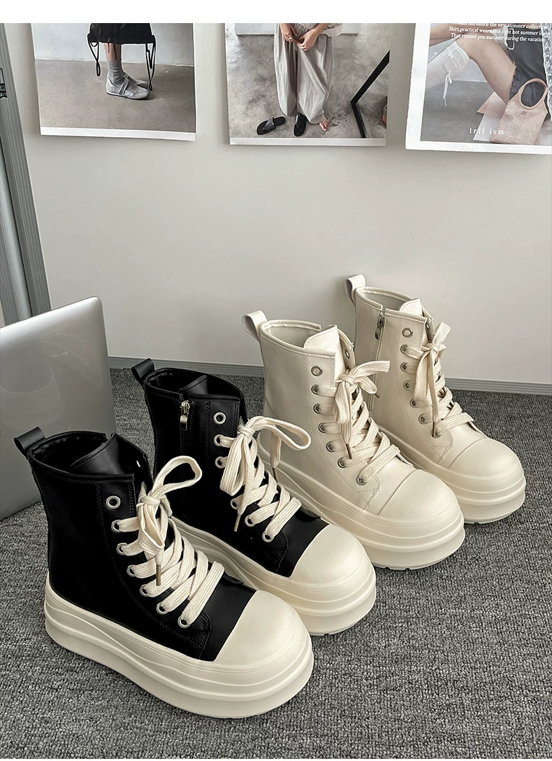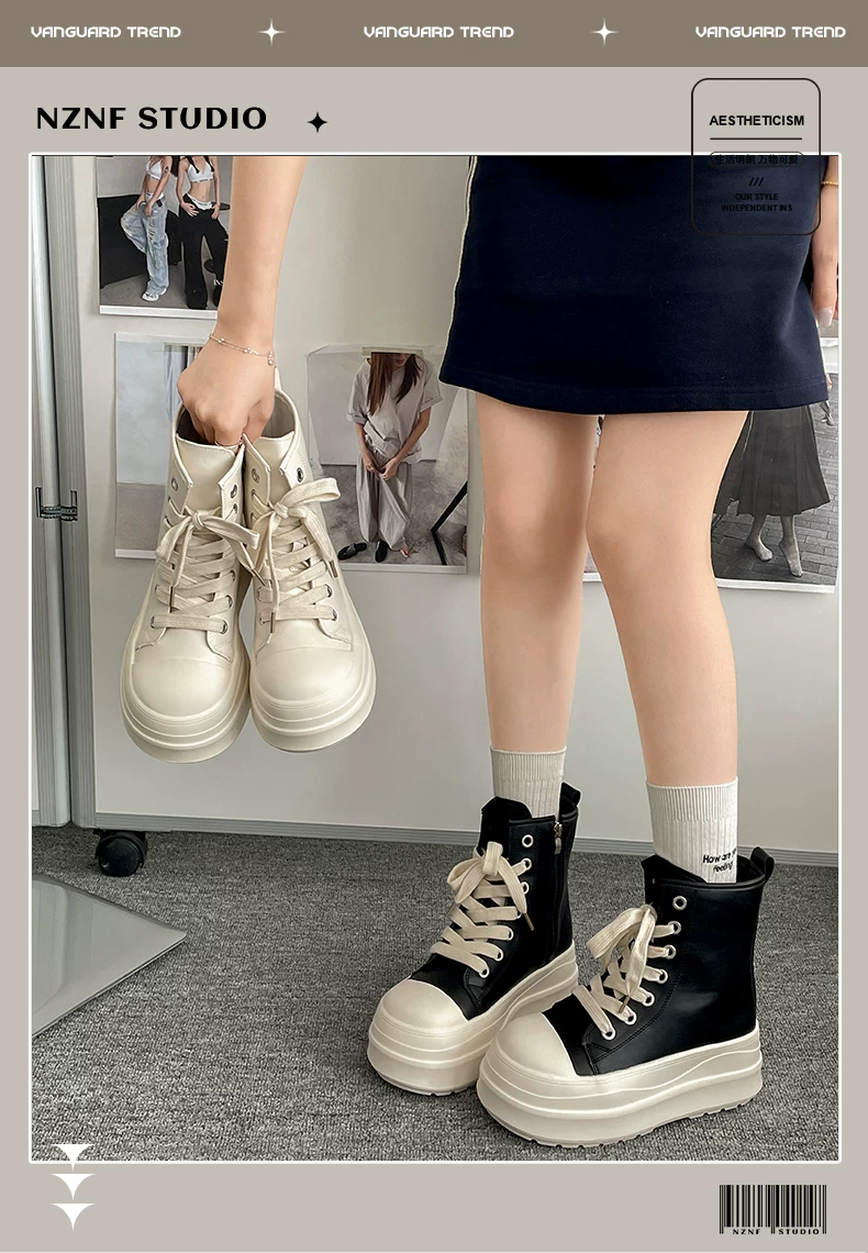 - Giày đế xuồng cao cổ điển màu đen dành cho nữ, kiểu thu đông 2025, phối chân váy, giày thể thao đa năng tăng chiều cao, phong cách thường ngày