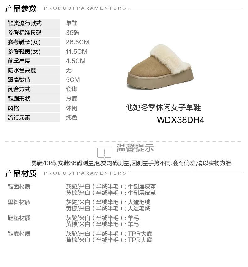 - Giày dép lót lông dày TATA dành cho nữ, giày lông ấm áp, giày đơn, ủng đi tuyết, giày cotton WDX38CH4