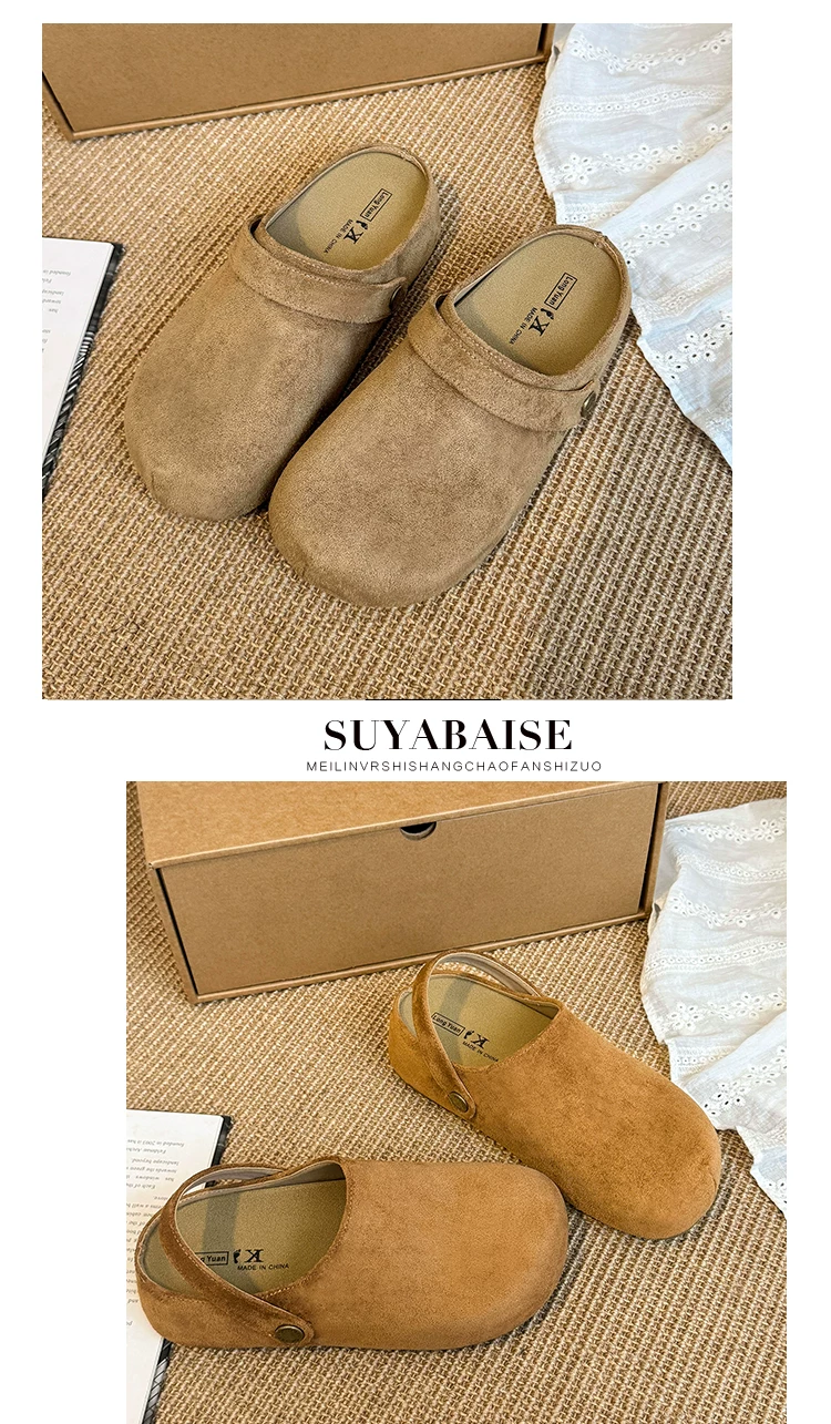 - Giày dép nữ kiểu Pháp cổ điển, đế dày chống trơn, mũi kín, thích hợp đi ngoài trời, mẫu mới thu đông 2025, lót lông mềm, kiểu Birkenstock nửa dép.