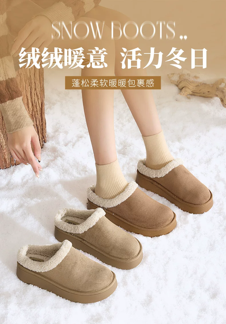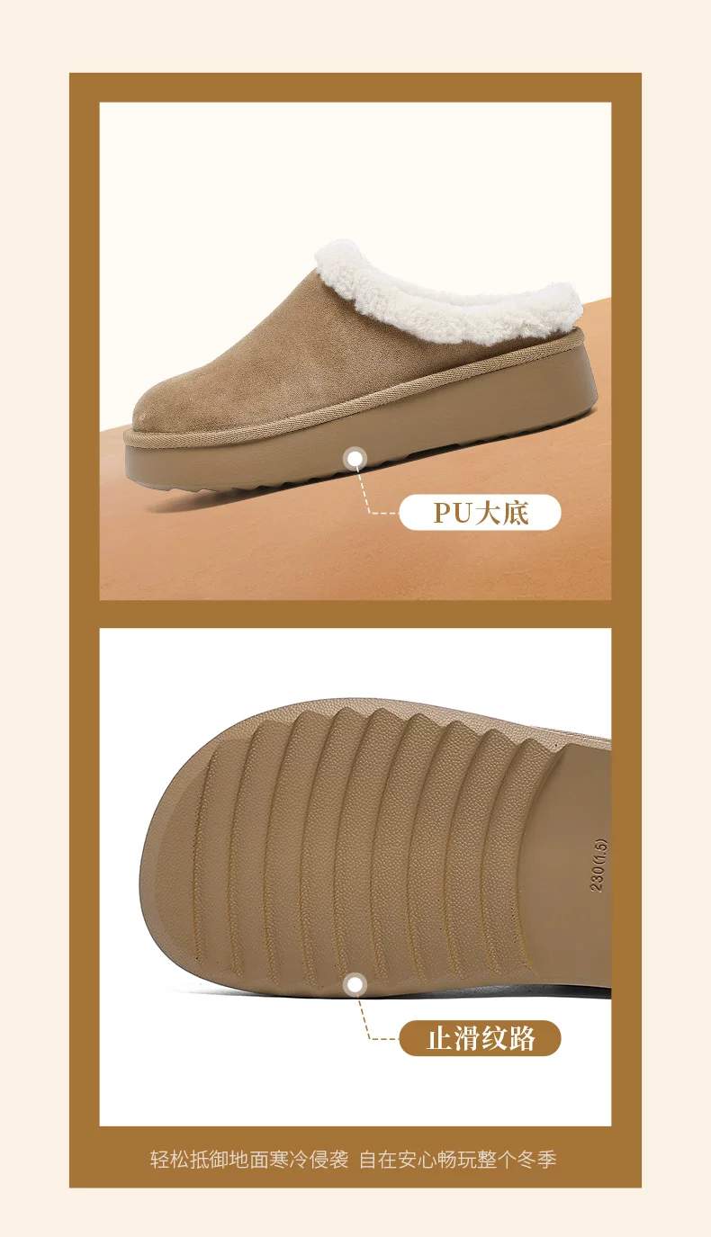Giày dép nửa kín mũi, đế dày, lót lông dành cho nữ của Dadong, mẫu mới thu đông 2025, lót lông cừu giữ ấm, kiểu giày Birkenstock.