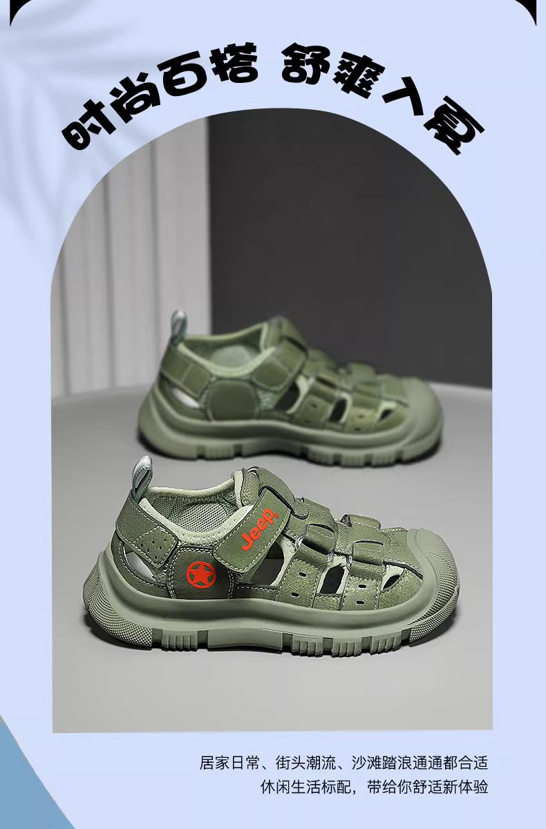 - Giày đi biển trẻ em Jeep dép sandal bé trai 2025 mùa hè mới đế mềm mũi kín giày nhẹ có khóa dán cho bé gái