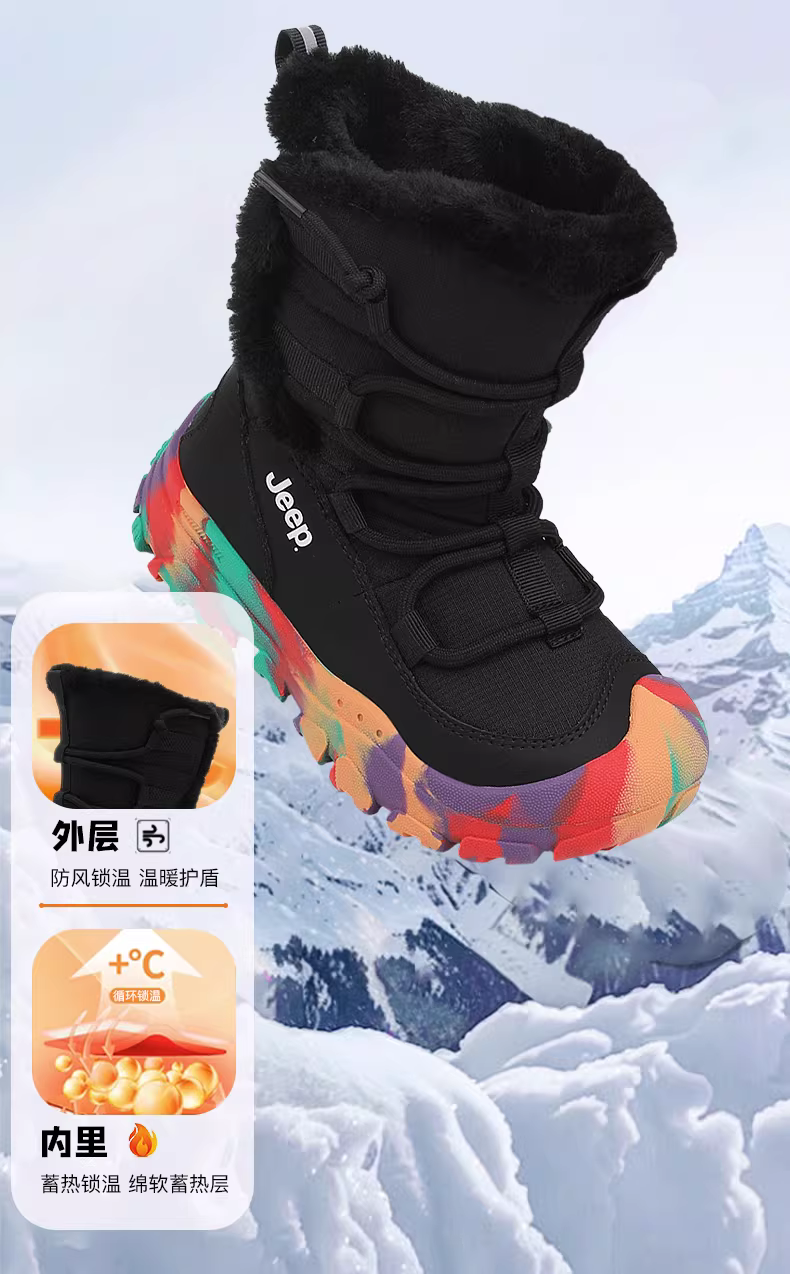 - Giày đi tuyết trẻ em Jeep, bốt cotton, giày cotton lót lông cừu mùa đông cho bé gái, giày đi tuyết chống thấm nước và chống trượt mới năm 2025 cho bé trai